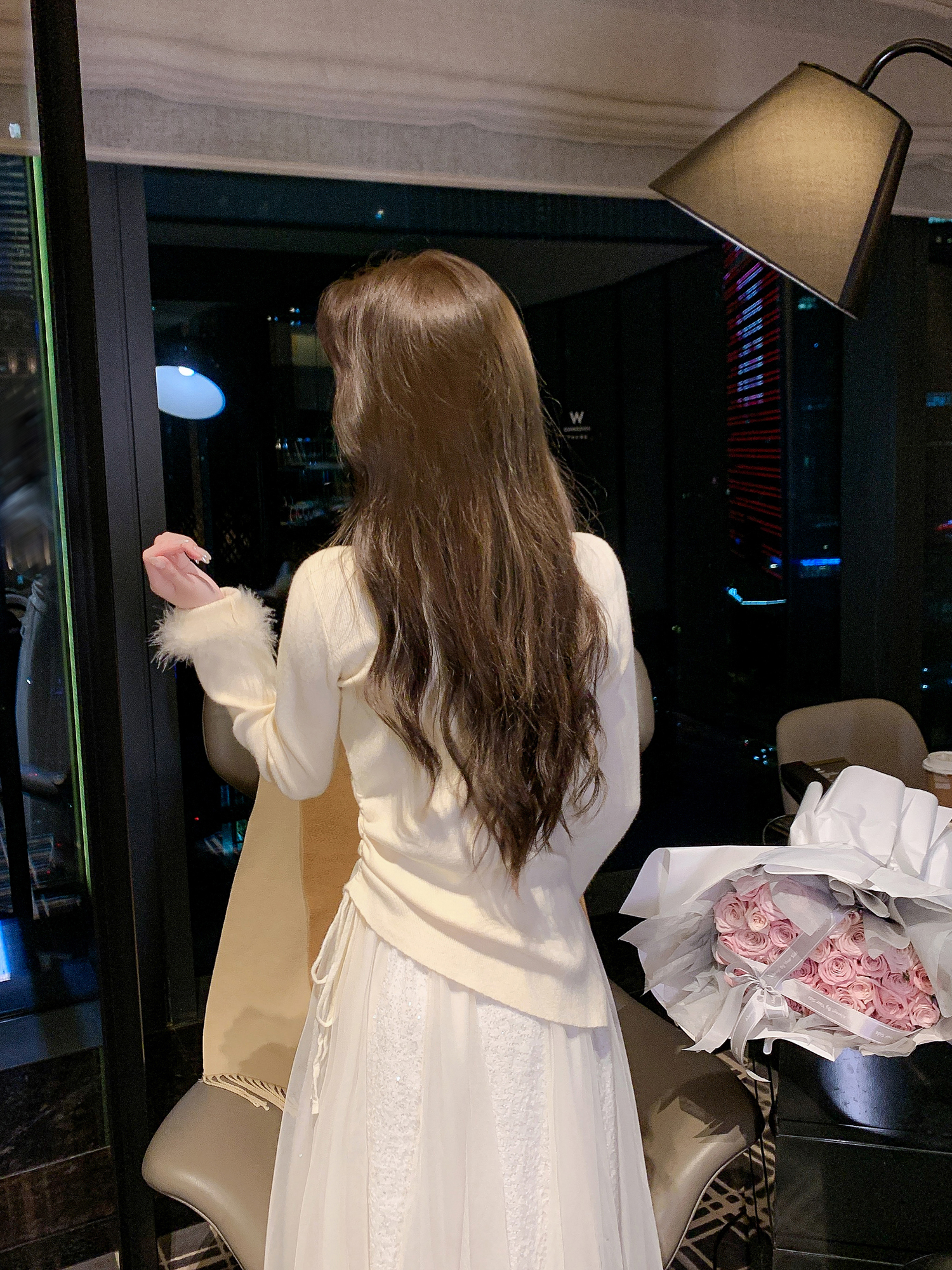 张心子【柔软法则】木耳边开衩针织衫不规则打底衫 U2602015