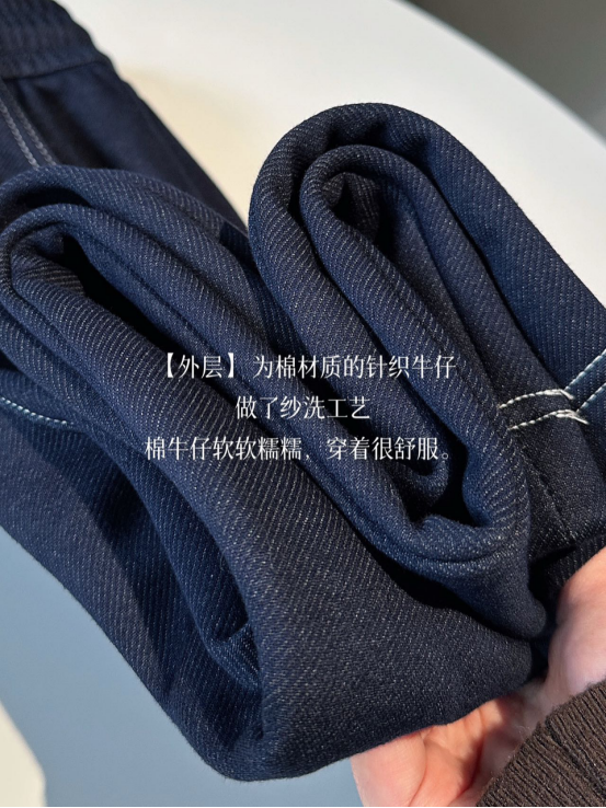裤子是整体加绒的 很保暖,户外再也不怕寒风。 松紧腰设计 舒适好穿,轻松拿下各种身材! 衣柜里的上衣都能搭 是秋冬季穿的本命牛仔裤没错了!