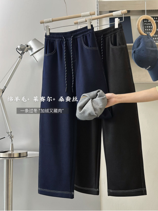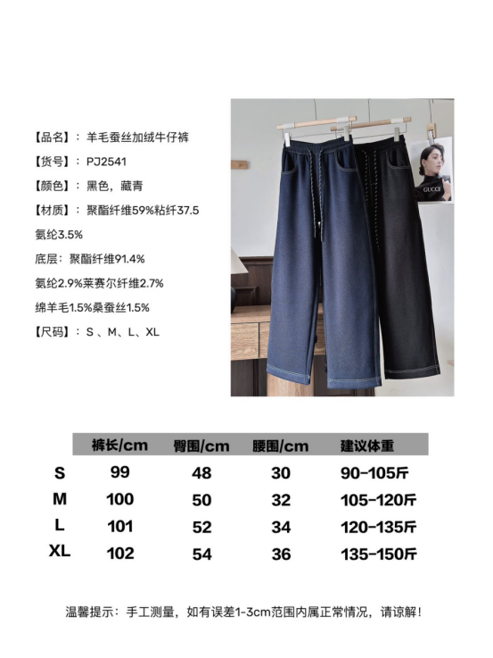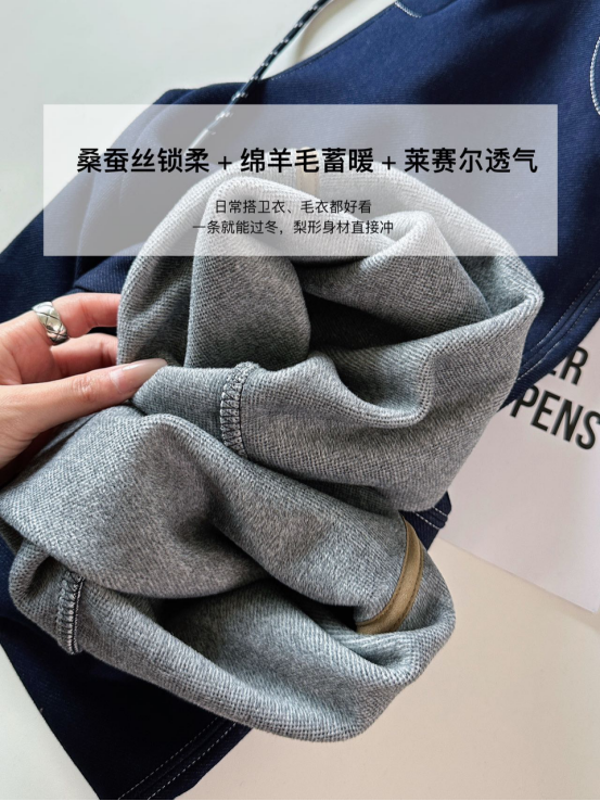 💖【莱赛尔羊毛蚕丝加绒牛仔裤PJ2541】😝 ❶桑蚕丝锁柔 + 绵羊毛蓄暖 + 莱赛尔透气 ❷软暖亲肤,👏🏻阔腿版型还能遮胯宽腿粗 ❸日常搭卫衣、毛衣都好看
