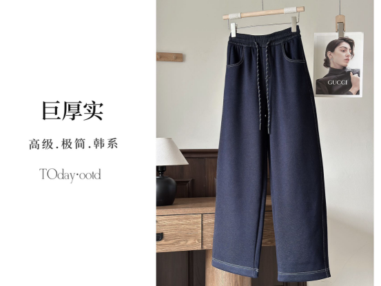 加厚高克重⬇️⬇️⬇️接近600克‼️‼️ 它是阔腿版型,藏肉又显瘦 简直是“视觉plus”直腿利器~ 上手触摸,纹理顺滑而柔软,细腻而舒适。 而且垂坠感十足,一点都不显得臃肿