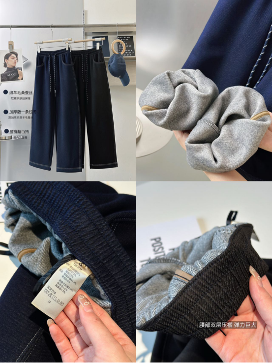 隔着屏幕都能感受到质感非常好👍 专治胯宽、腿粗!藏肉天菜! 多次水洗工艺!面料柔软舒适 微弹力耐磨耐皱,品质超级好! 比其他裤子显瘦10倍,拉长腿部线条 不挑腿型,百搭不挑人,上身显高显瘦!