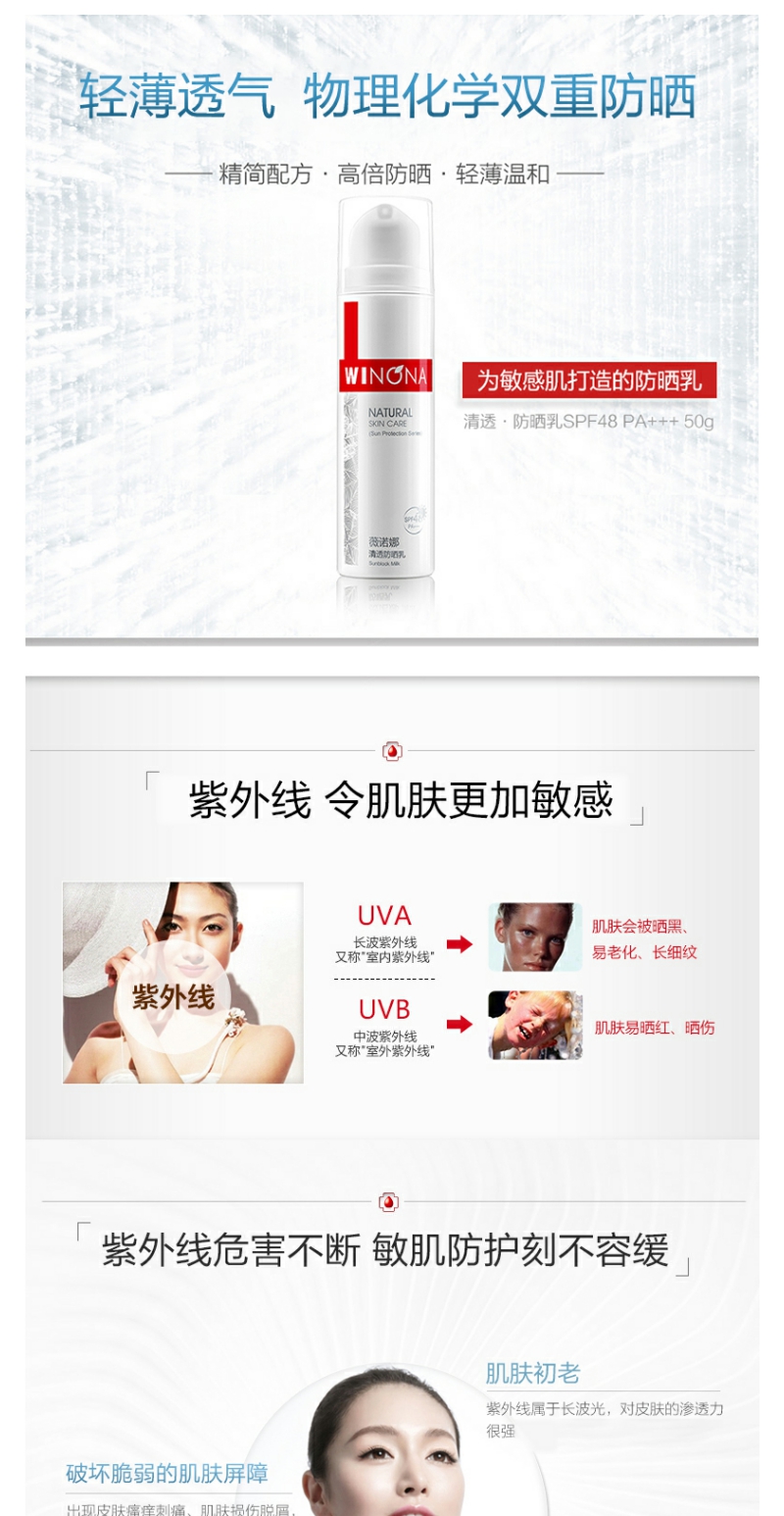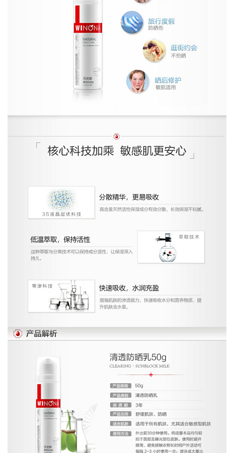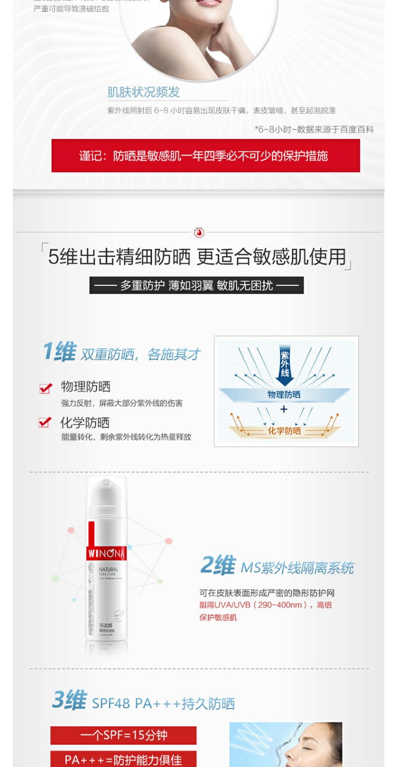 【YZ】Winona/薇诺娜清透防晒乳SPF48/PA+++敏感肌户外学生防紫外线50ml