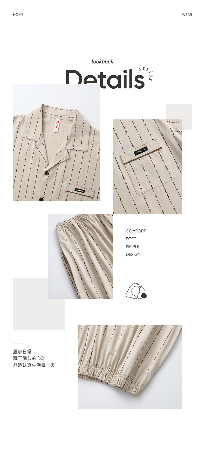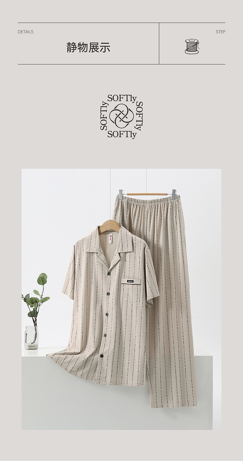 (合作款)芬腾新款男士夏季睡衣纯棉短袖长裤家居服套装yc0209003