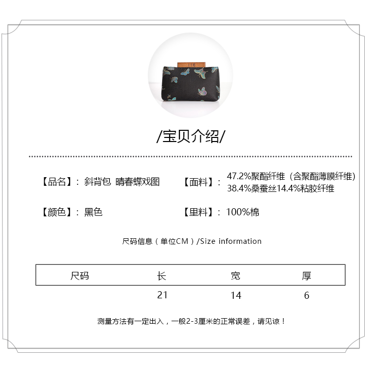 SAINTJOY/上久楷 宋锦斜背包 晴春蝶戏 XB3B095211002