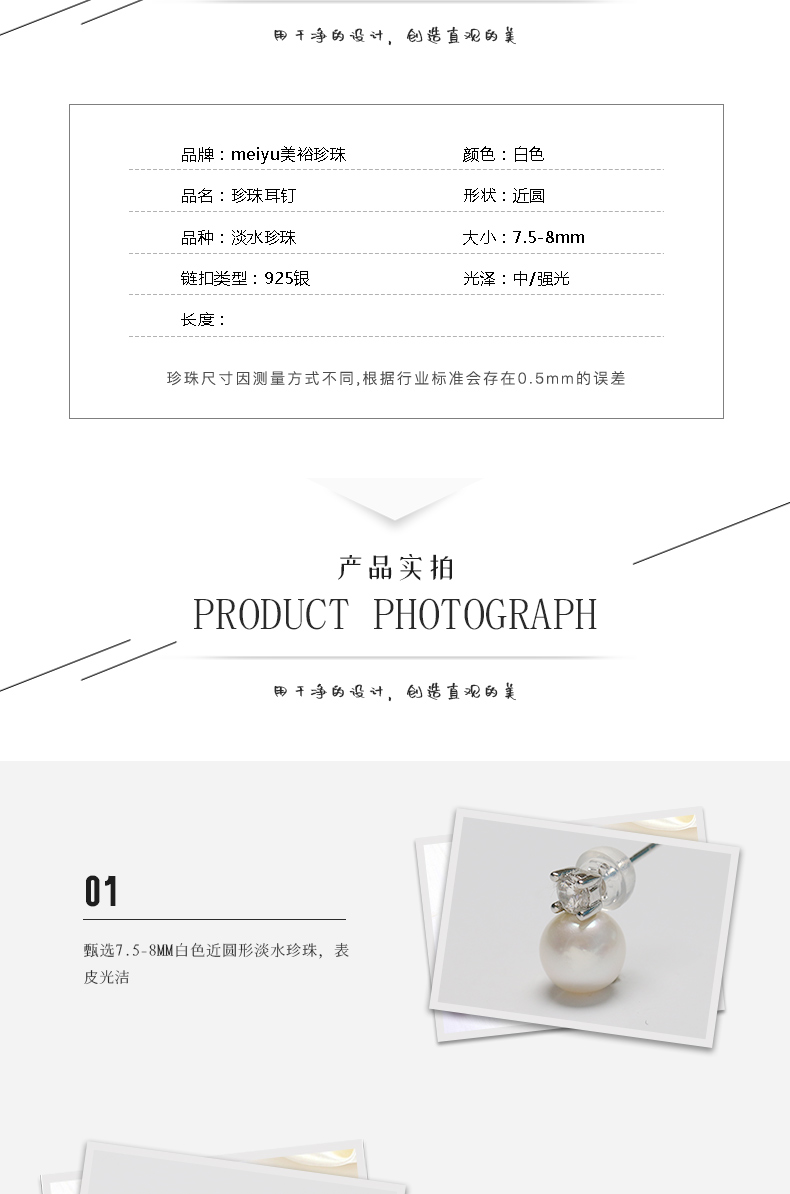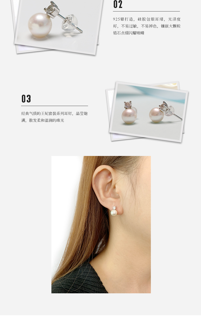 美裕 【永恒】银925淡水珍珠耳钉7.5-8mm白 104986