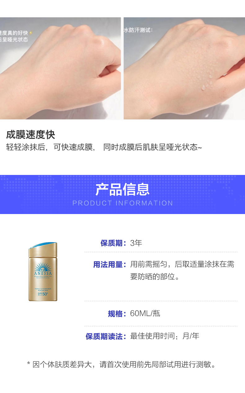 安热沙小金瓶防晒霜耐晒清爽隔离60ml+MAC丝缎柔雾口红314#3g