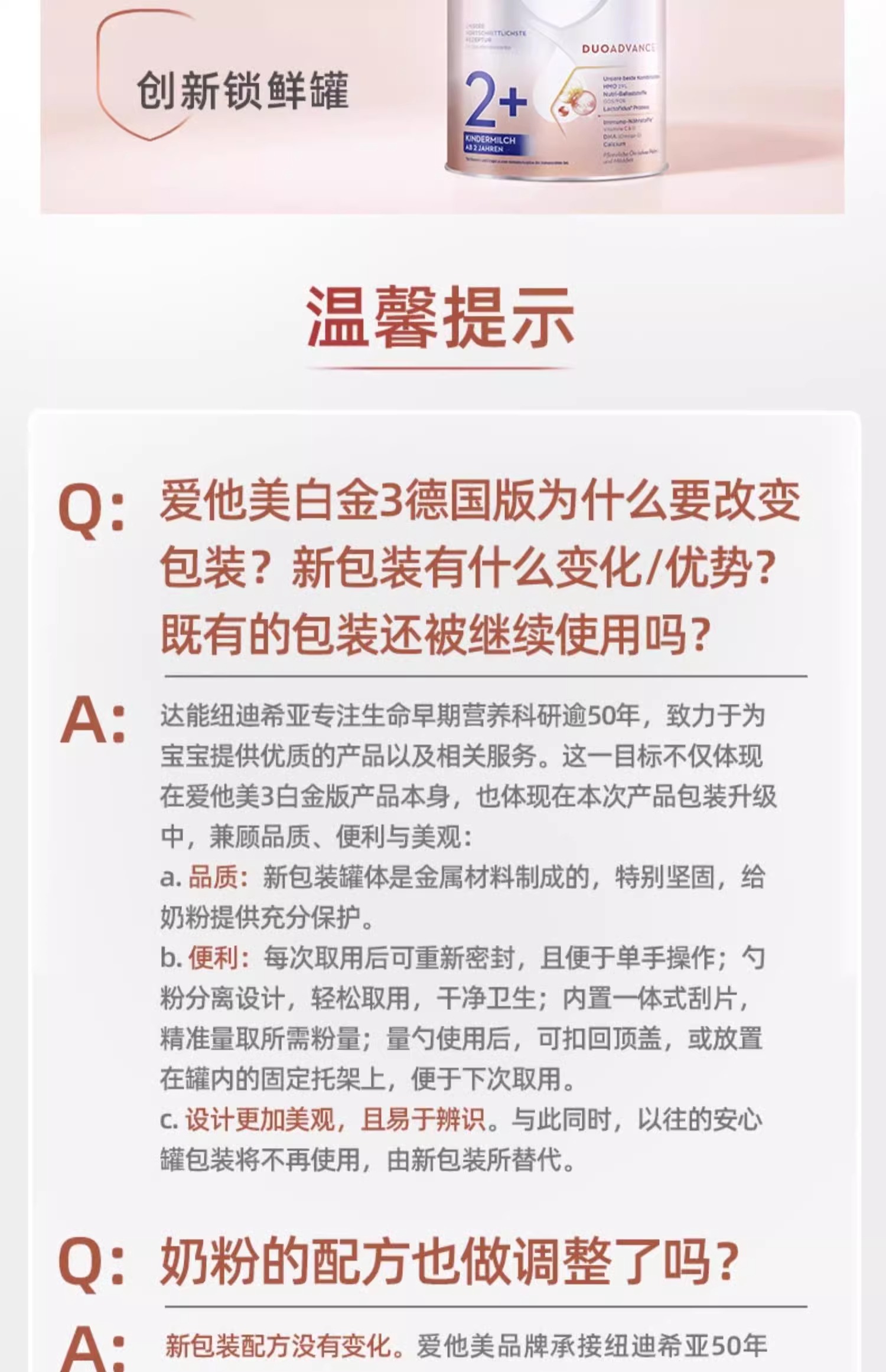【中欧班列精选】HNMG 德国爱他美Aptamil白金版 2+段(适宜两岁及以上宝宝) 800g/罐