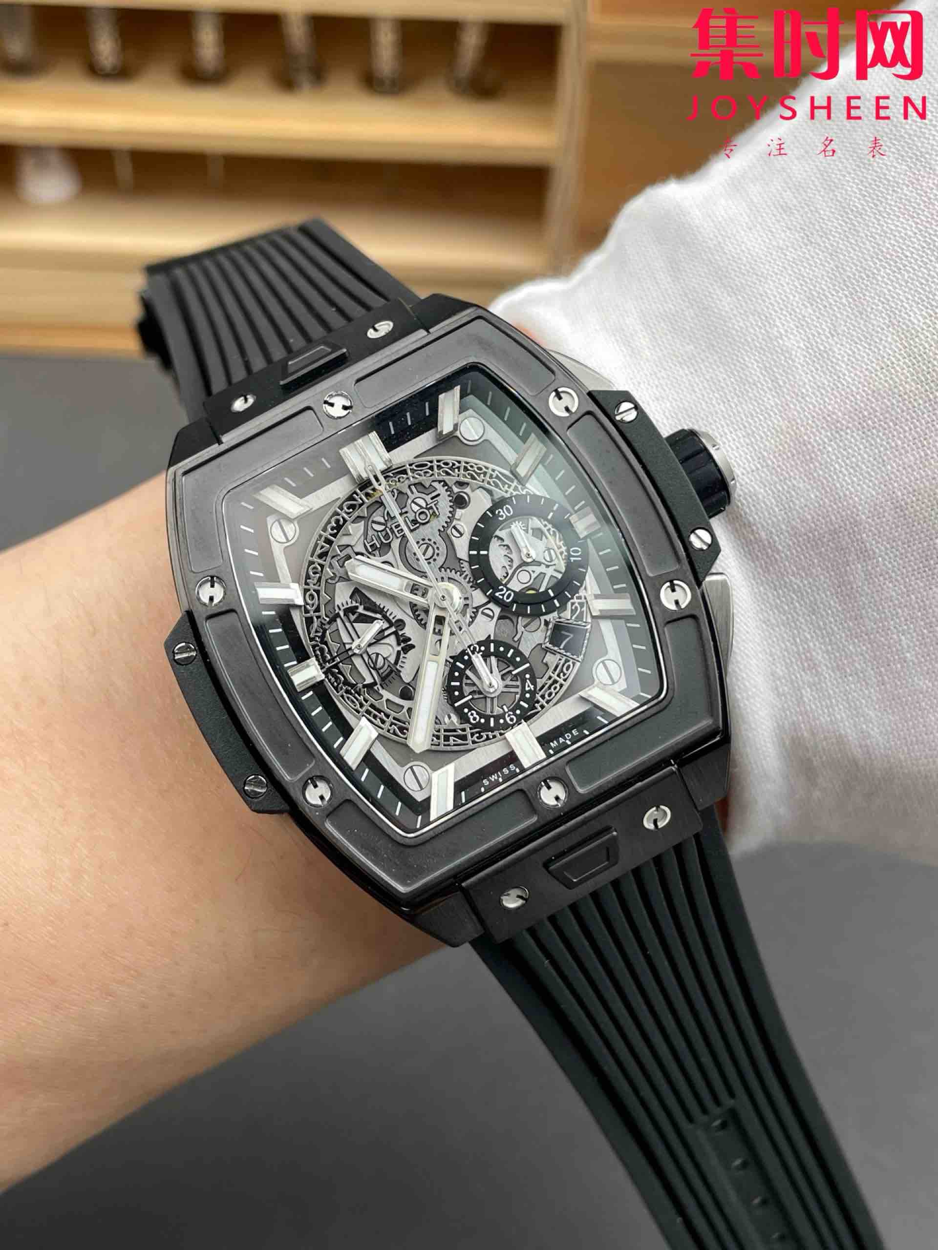 MS彩色陶瓷 灵魂酒桶型 宇舶 -全新彩色“陶瓷工艺” 灵魂BIG BANG系列 男士腕表 以赛车为灵感,推出全新Spirit of Big Bang!腕表结合Spirit of Big Bang系列的所有标志性元素,全新酒桶形全陶瓷表壳。表壳应用钛金属跟树脂材料,借助六枚H型螺丝构建“三明治”结构,传达“融合的技术”的理念,定制HUB4700自动上链机芯,原装折叠表扣,订制氟橡胶表带,腕表配有“一键式”快速更换表带系统,佩戴者只需轻轻一按,即可以轻松快捷地替换表带!!!