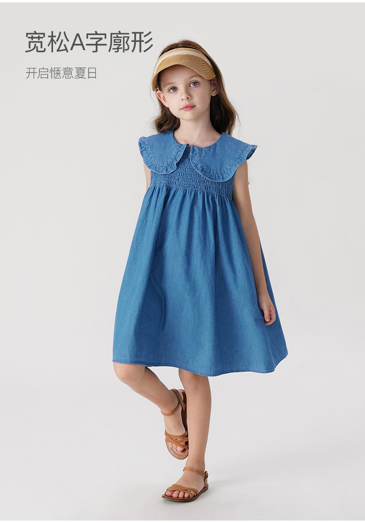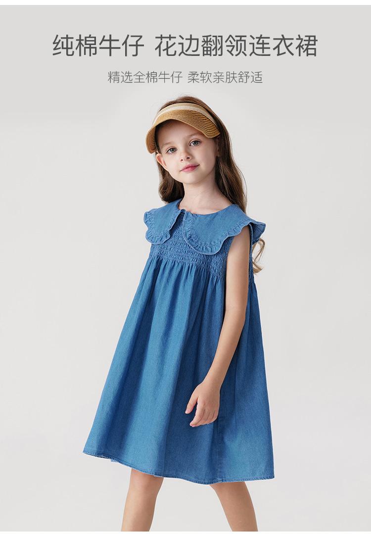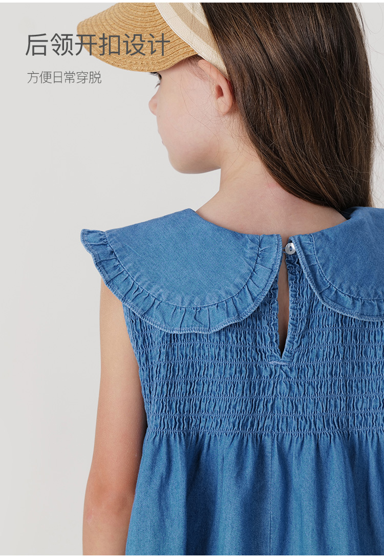 马克珍妮女童娃娃领无袖牛仔连衣裙儿童裙子2024年夏装新款240687