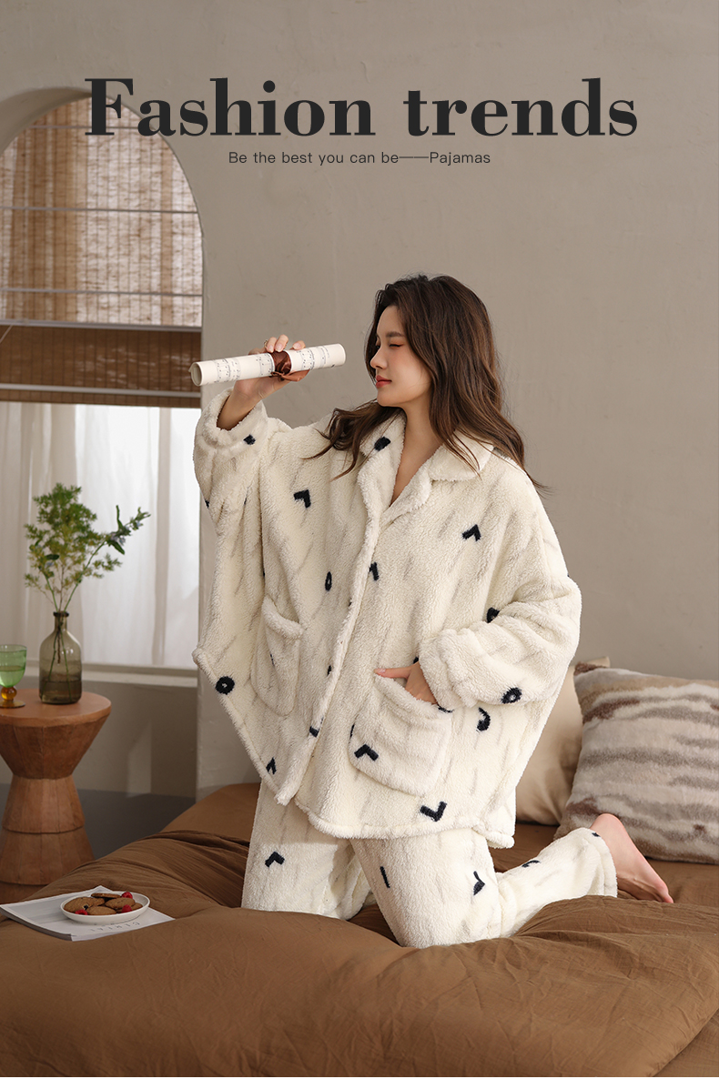 可人儿原创冬季舒棉绒女士睡衣韩系加厚保暖可外穿珊瑚绒家居服