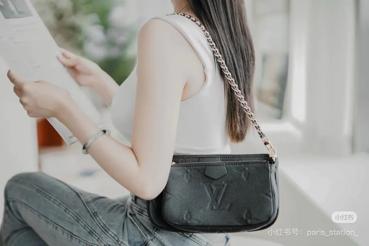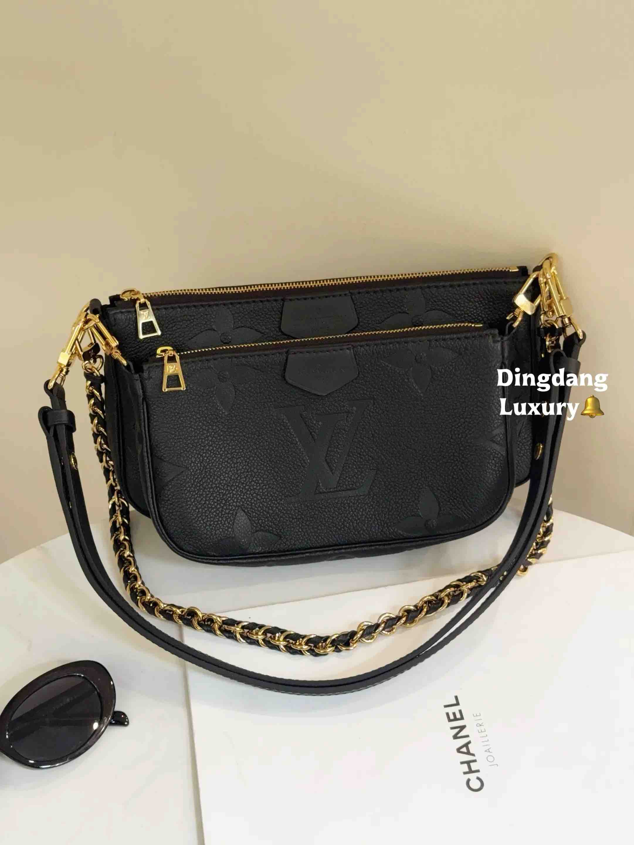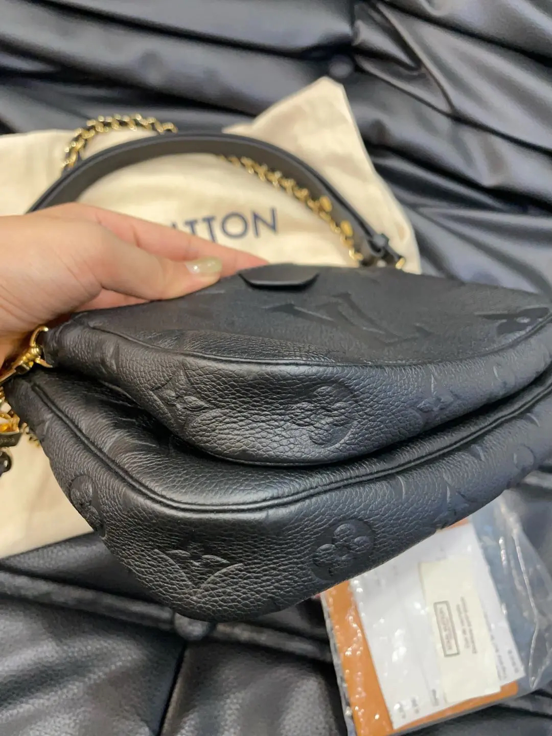 【商品详情】正品二手 LV 四合一 黑色 压纹牛皮 斜挎包💝 99新 24x13 配件:票 肩带 链条 两子袋 防尘袋。多种背法很时尚