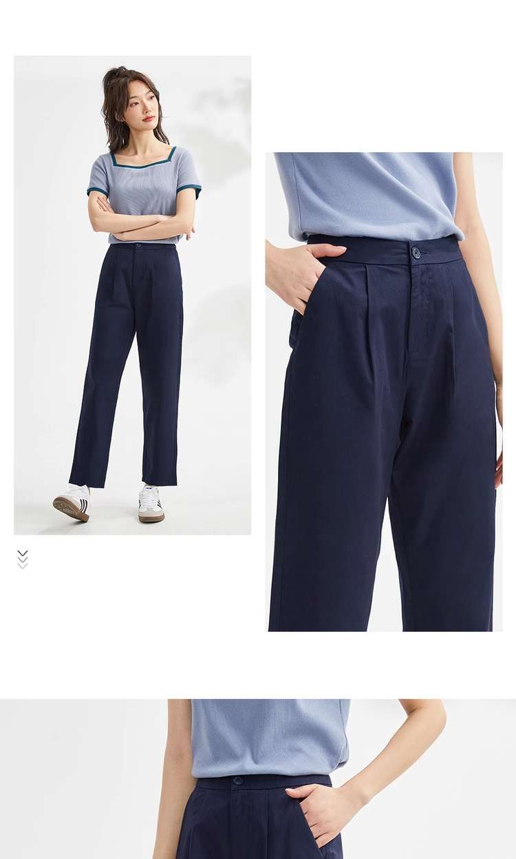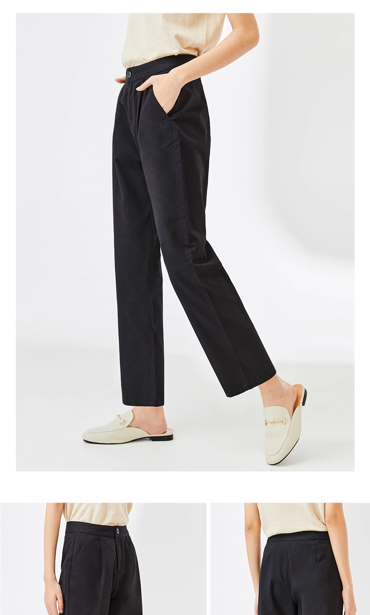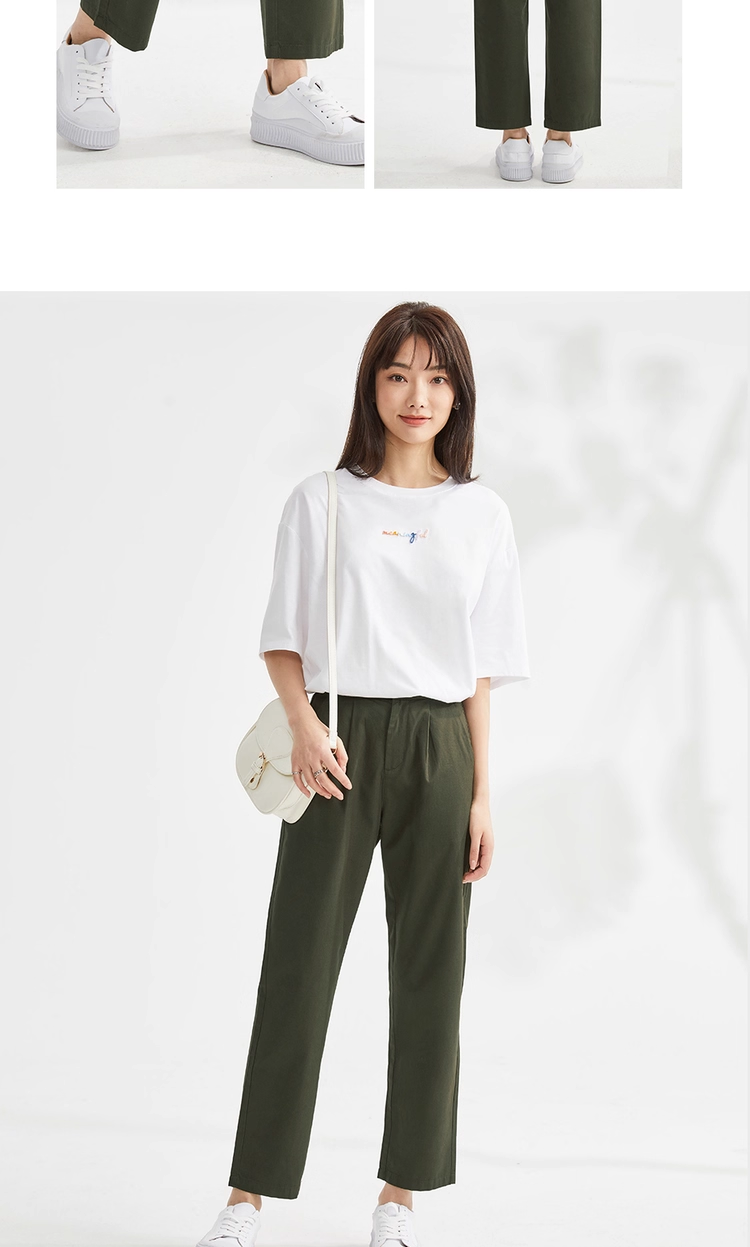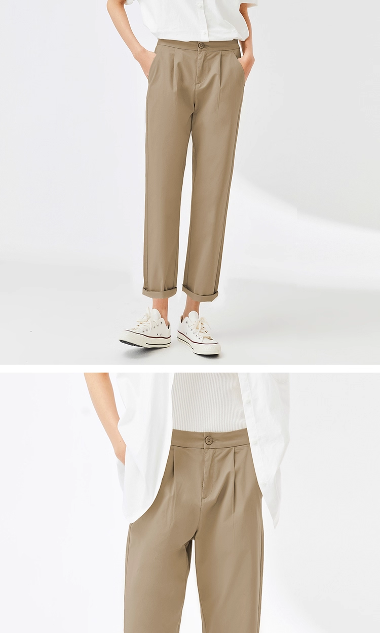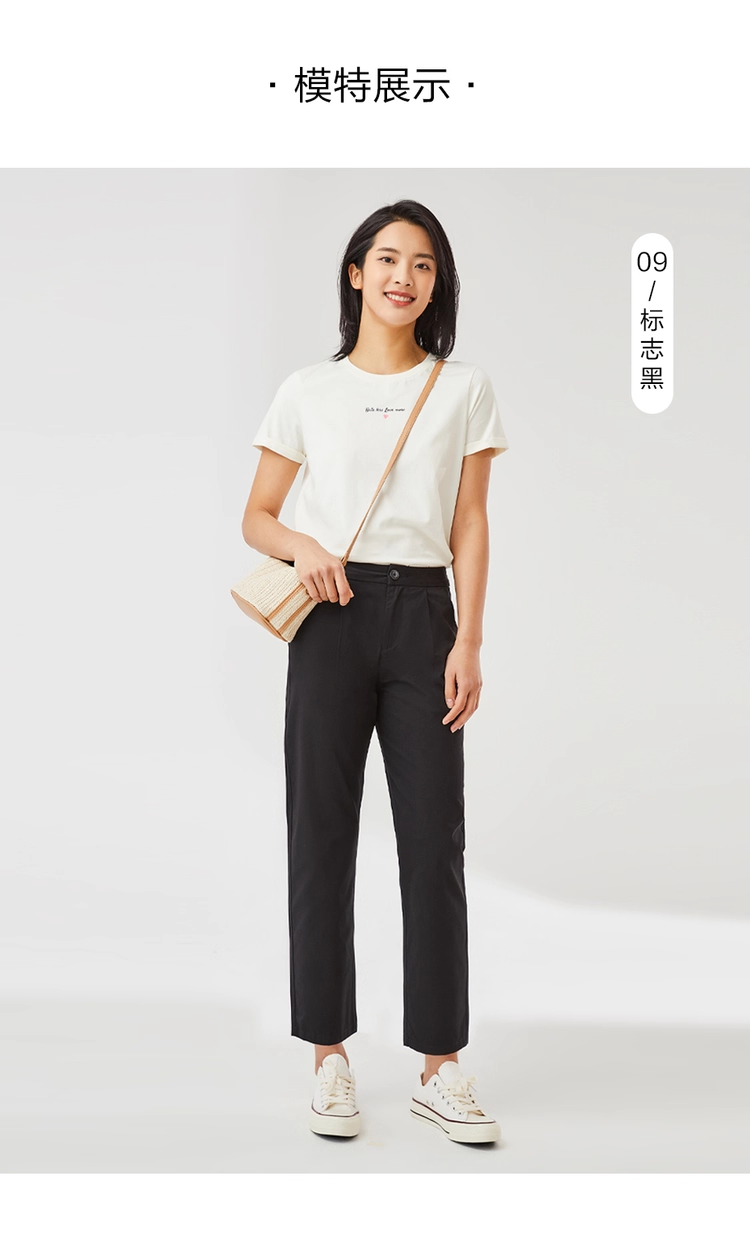 佐丹奴九分裤女装纯棉梭织纯色中腰薄休闲九分裤 13423221