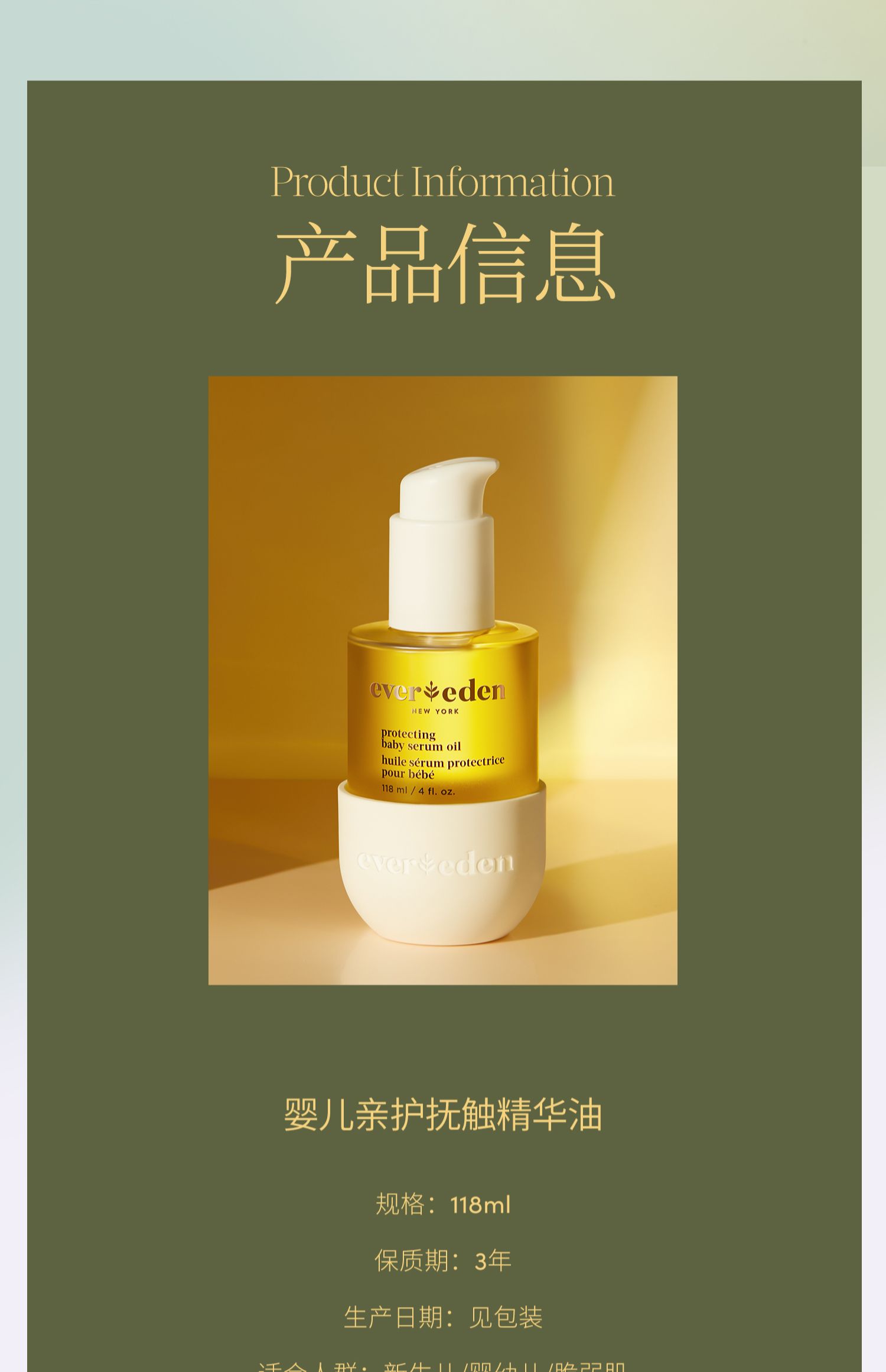 Evereden抚触油安唯伊宝宝按摩油婴儿胎脂修护抚触油小金油118ml