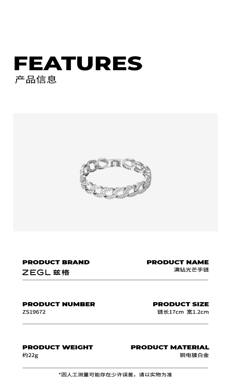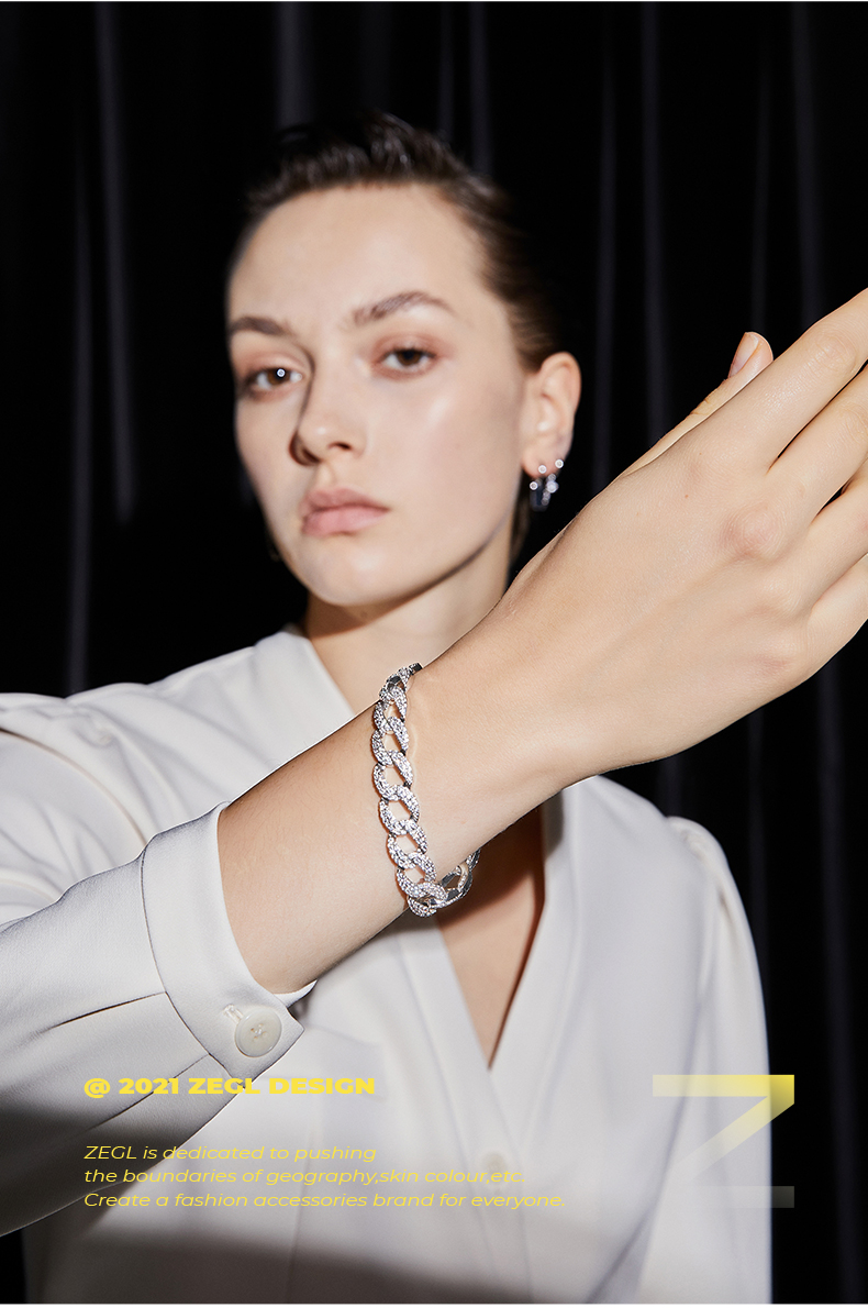 ZEGL欧美嘻哈甜酷手链女潮ins小众设计冷淡风古巴链个性气质手饰