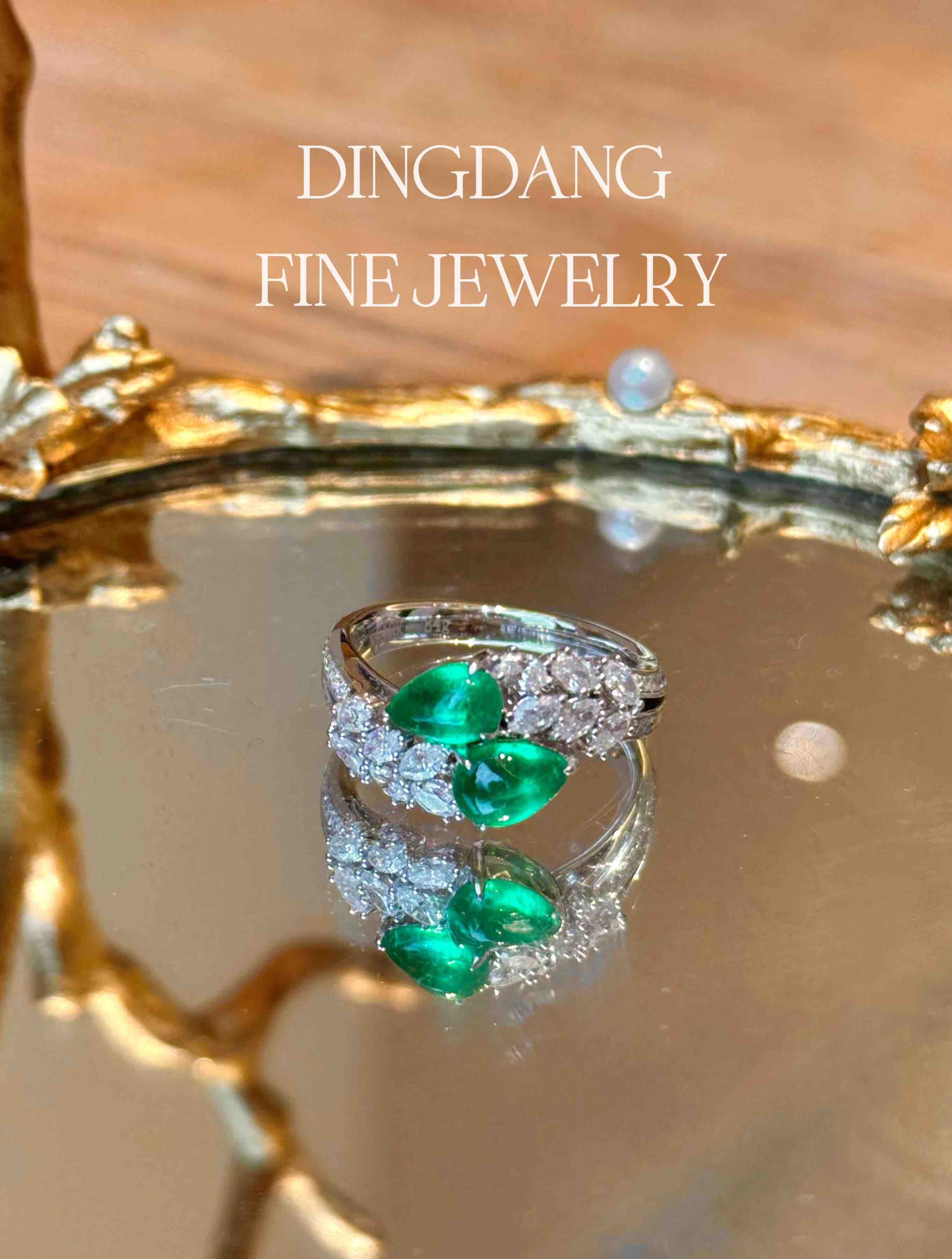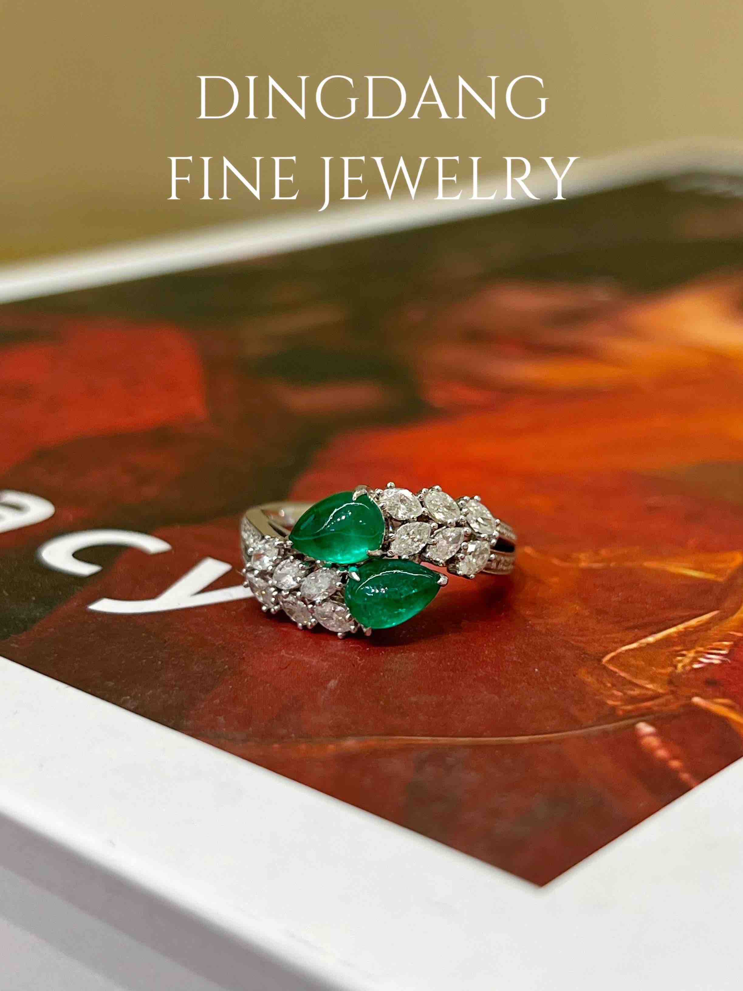 克拉哥伦比亚素面祖母绿,晶体洁净,双宝石设计 设计感满满 富贵大方,闪烁岀彩,上手别致大气且华美,GUILD证书,18K白金。