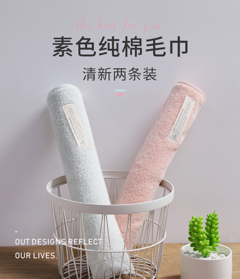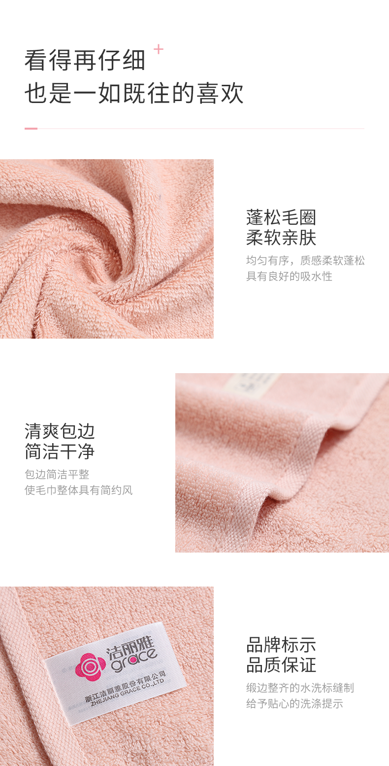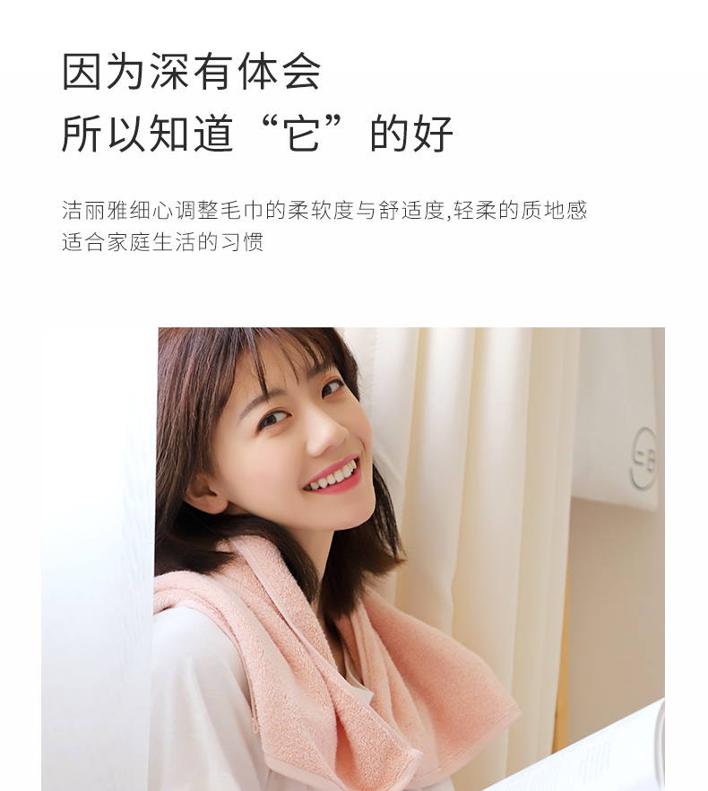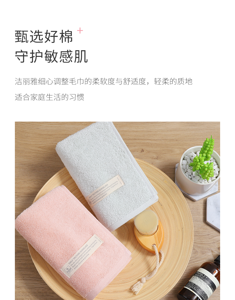 洁丽雅(Grace)新疆棉毛巾 长绒棉A类毛巾2条装 纯棉加厚柔软强吸水洗脸巾 72×34cm 樱花粉+素雅绿