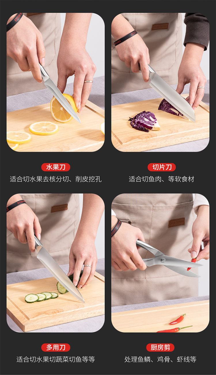 Debo德铂泰达刀具套装多功能收纳刀座不锈钢刀具组合6件套