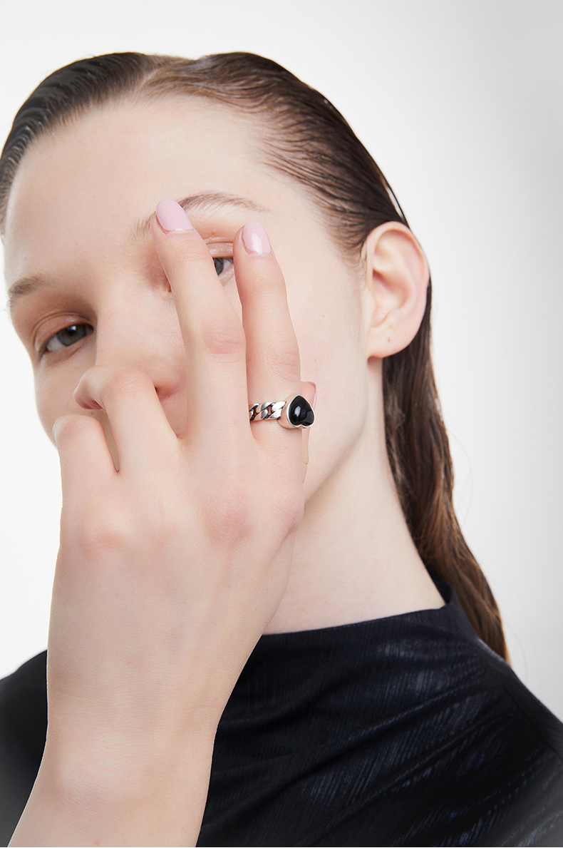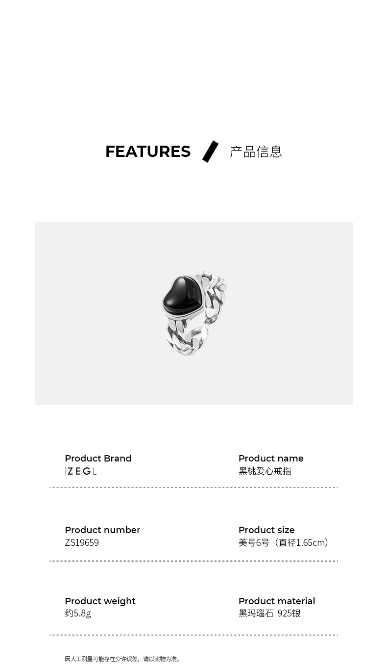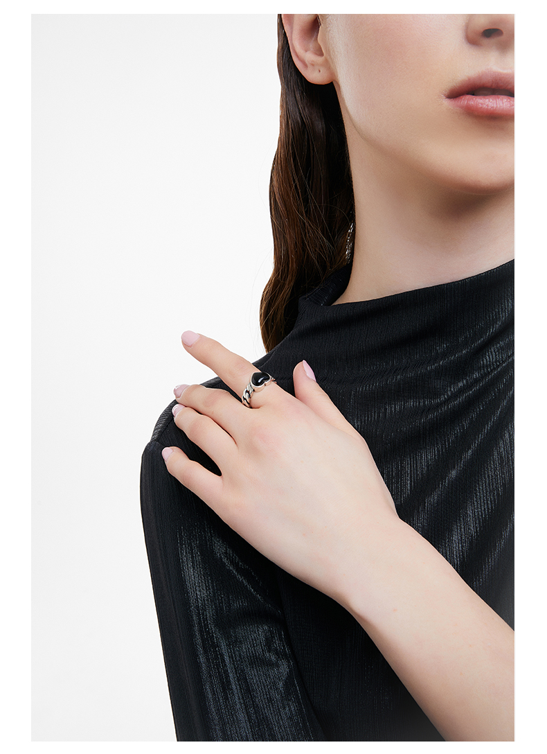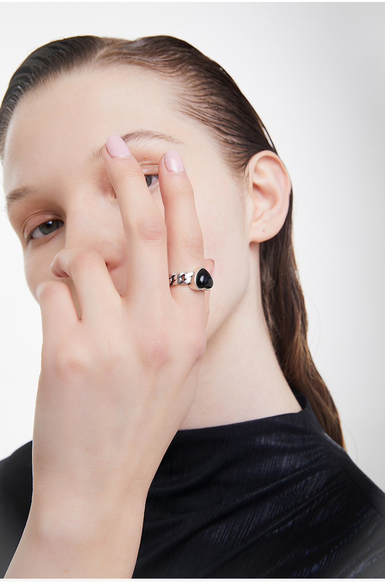 ZEGL925纯银复古玛瑙爱心戒指女小众设计时尚个性指环开口食指戒