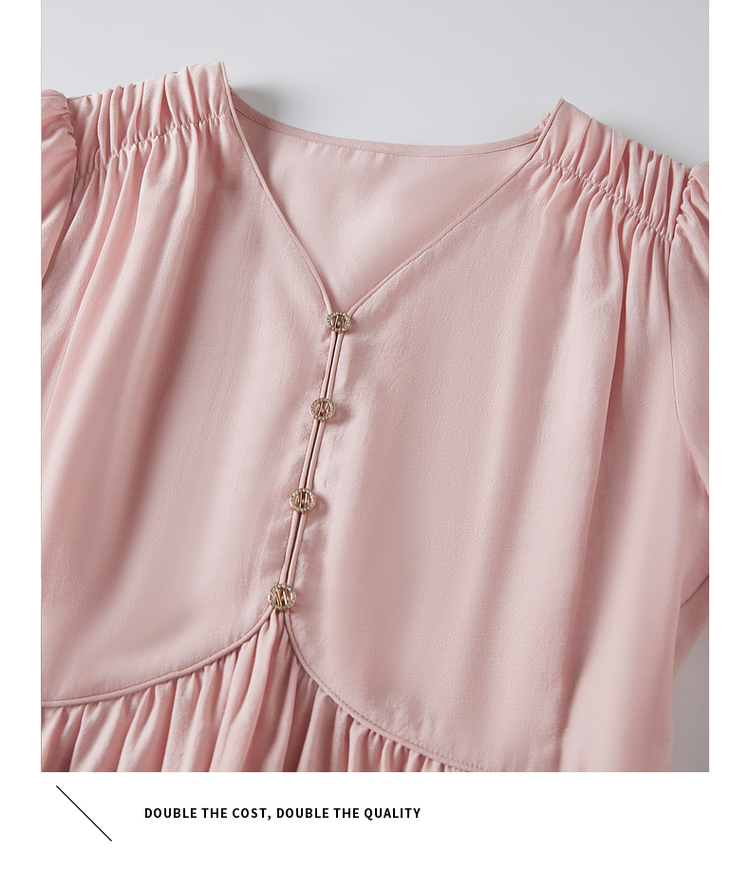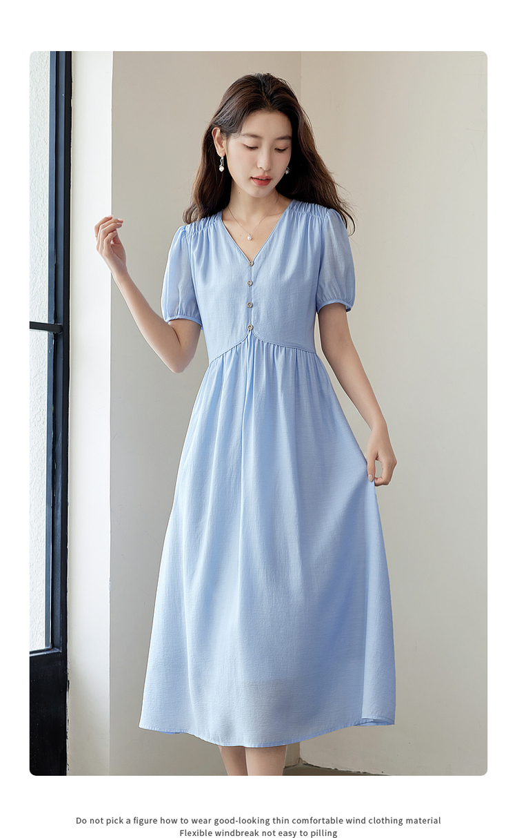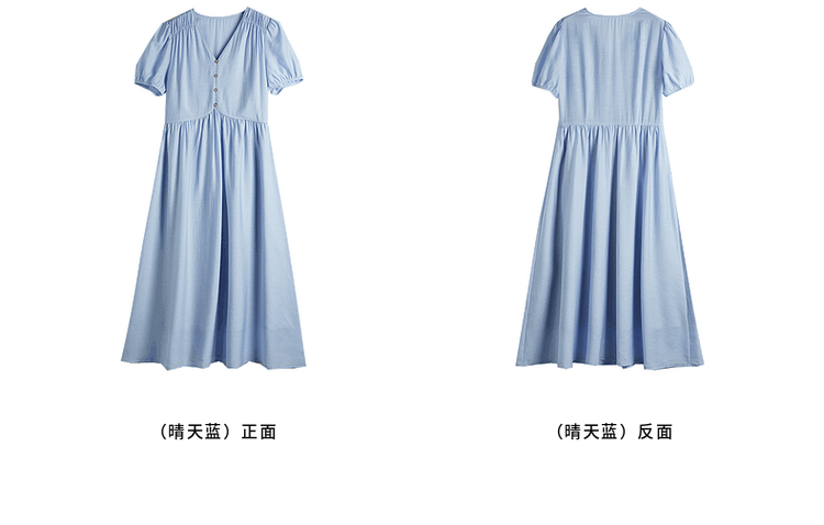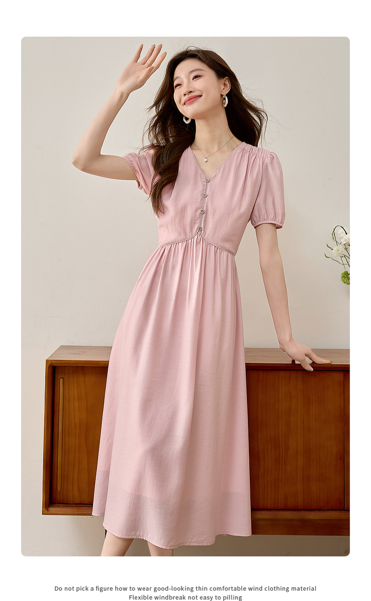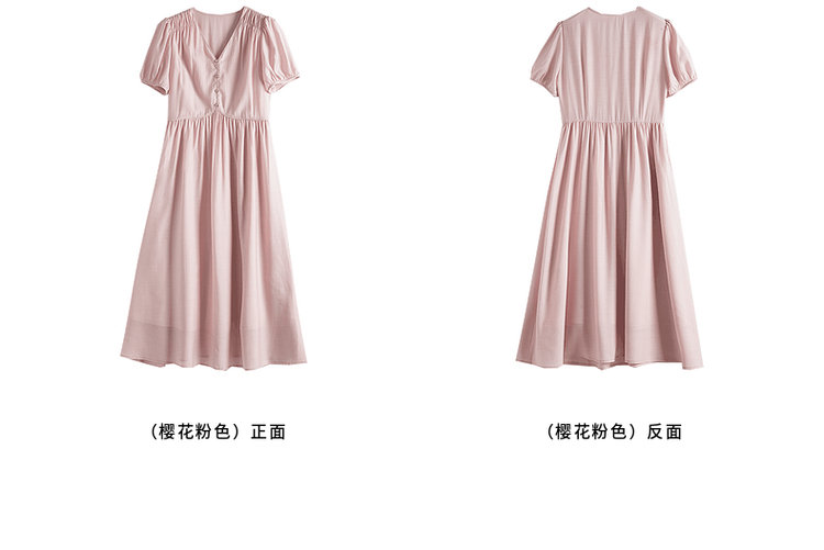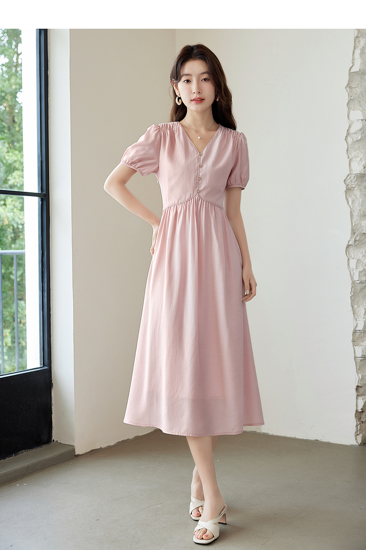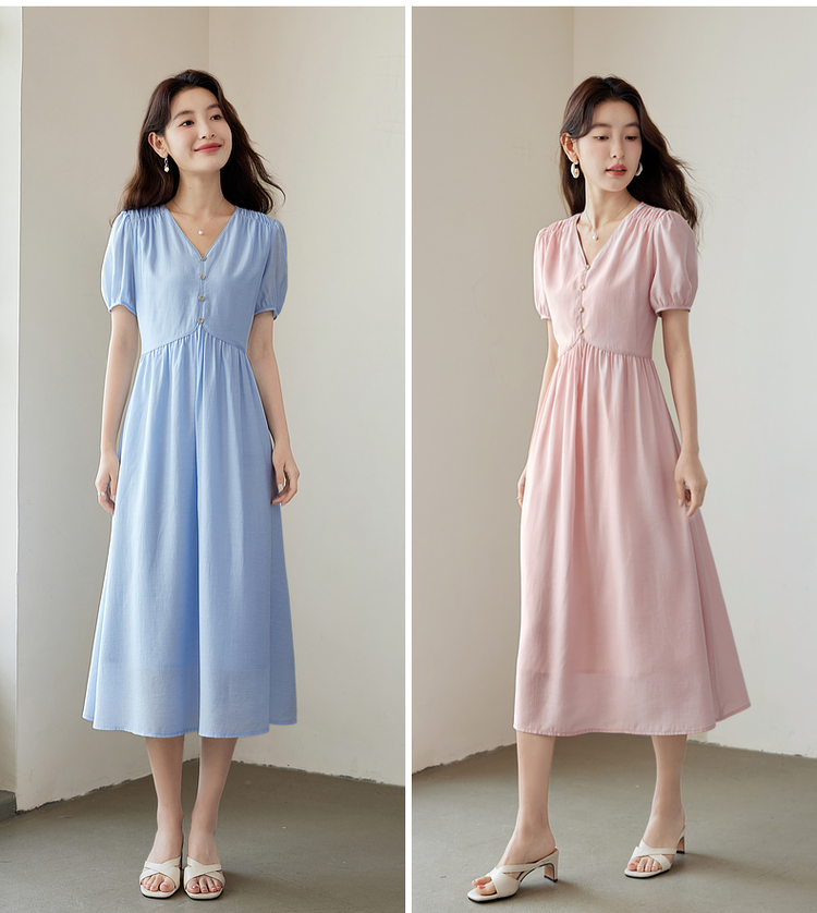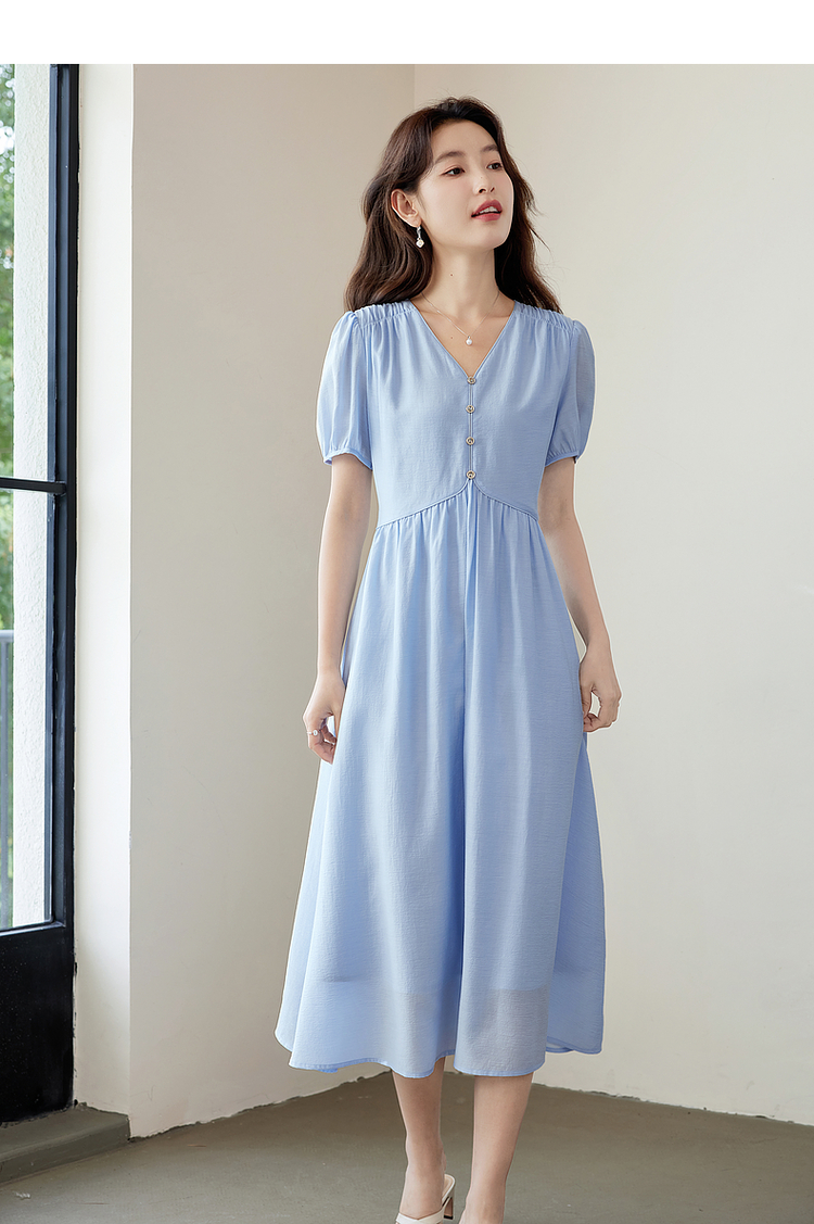 【专属特价】熙世界法式优雅泡泡袖V领连衣裙女2025新款夏季气质显瘦a字长裙