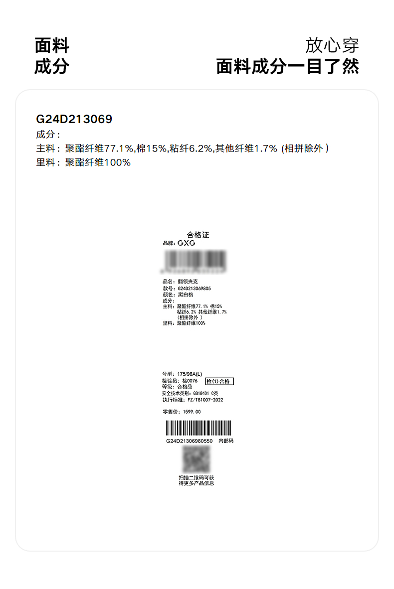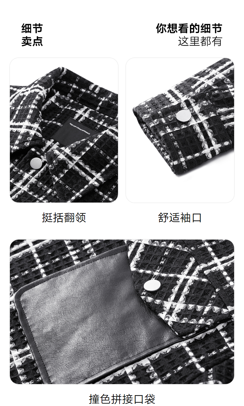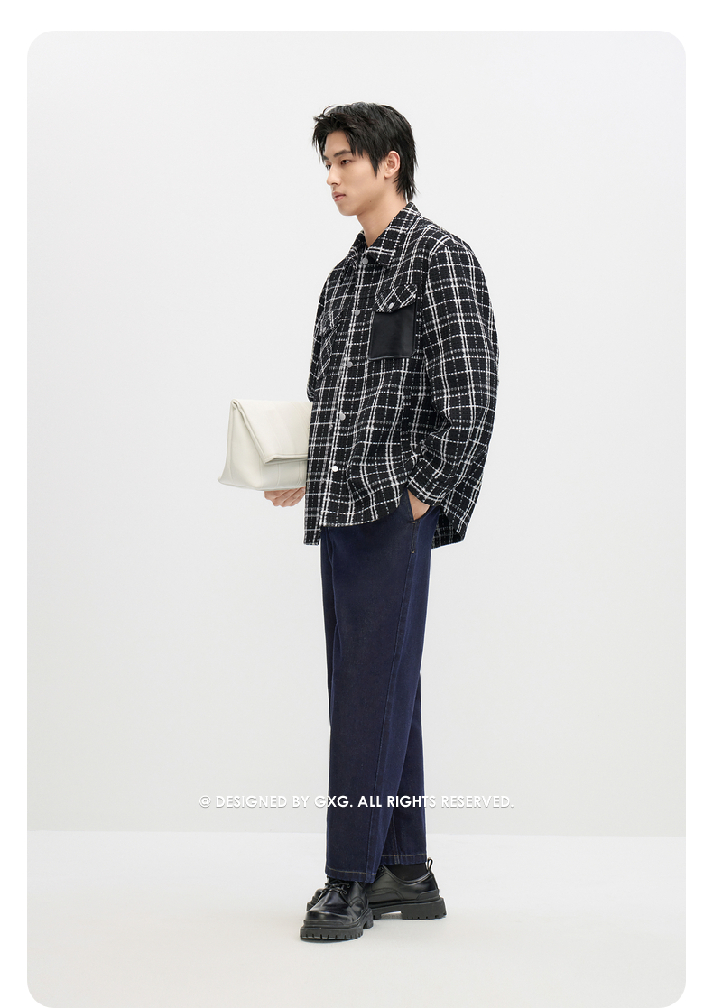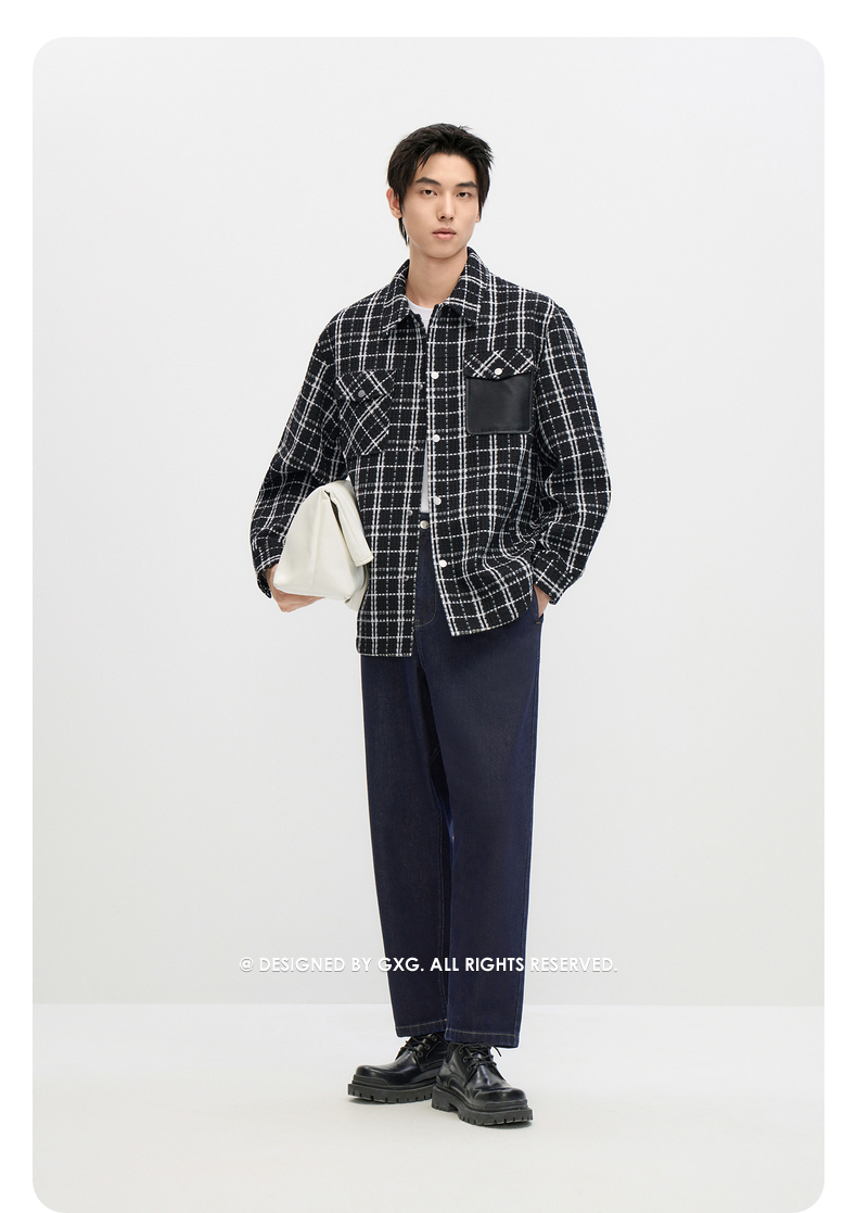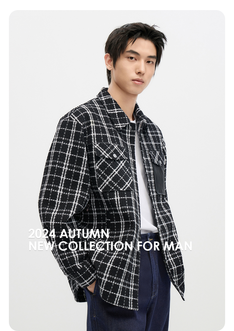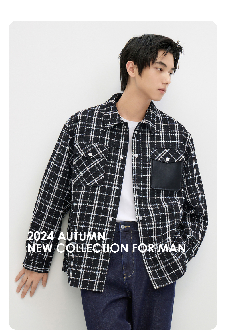 GXG男装 2024年秋季热卖GXG黑白格潮流休闲宽松外套夹克男