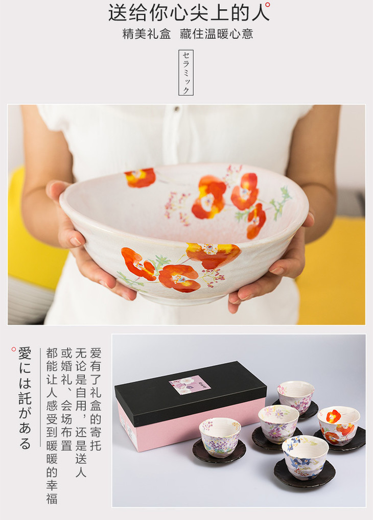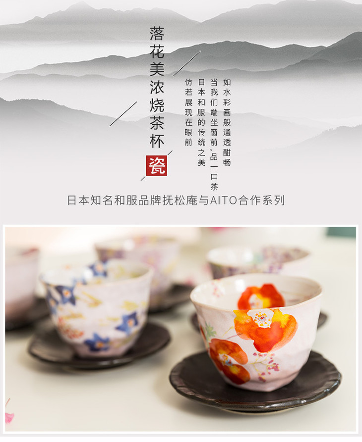 日本原产AITO抚松庵系列美浓烧陶瓷茶杯托茶具5件套