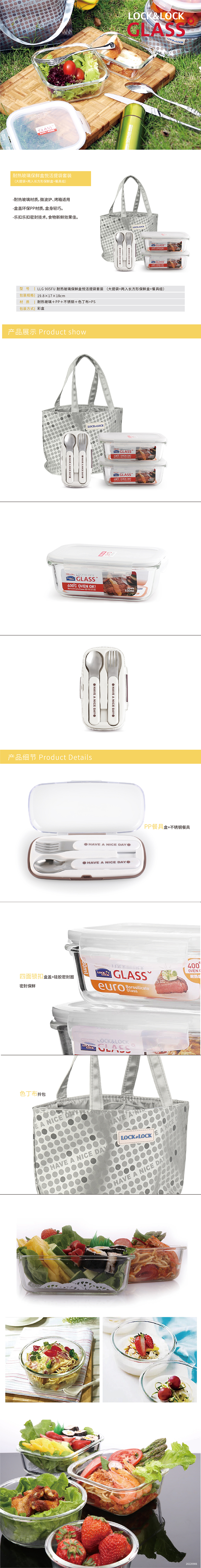 Lock&lock乐扣 耐热玻璃保鲜盒悦活提袋套装LLG 905FU