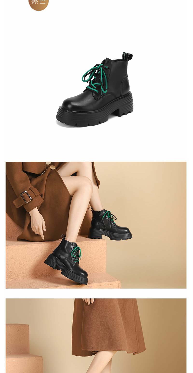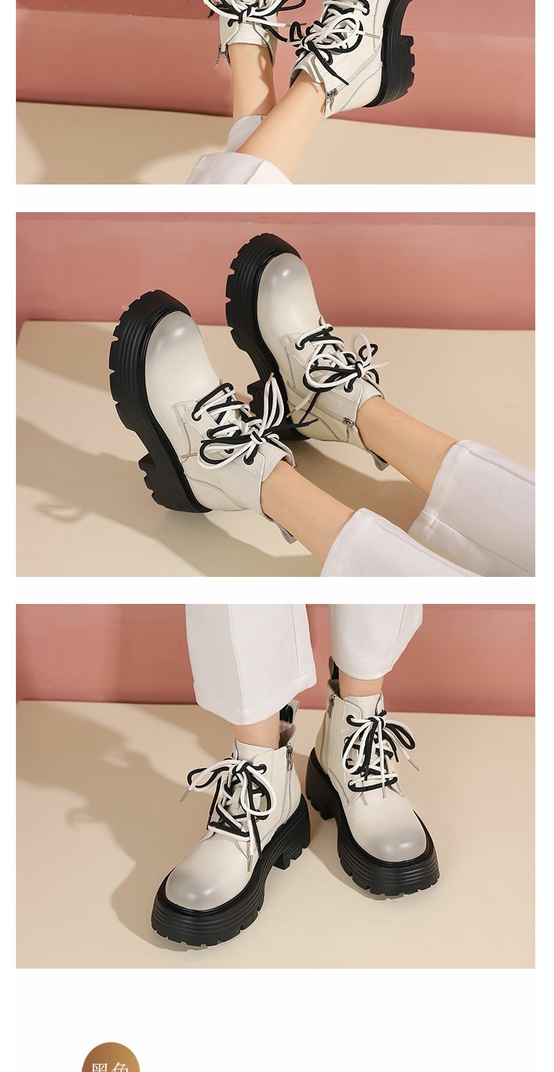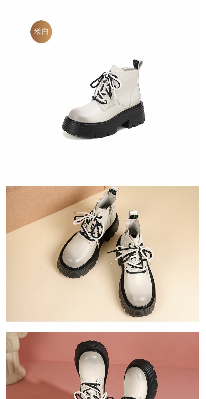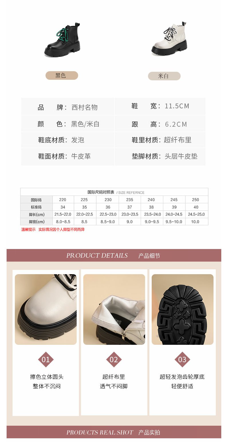 西村名物22年秋冬新款撞色绑带马丁靴秀气立体圆头短靴超轻舒适女靴45021