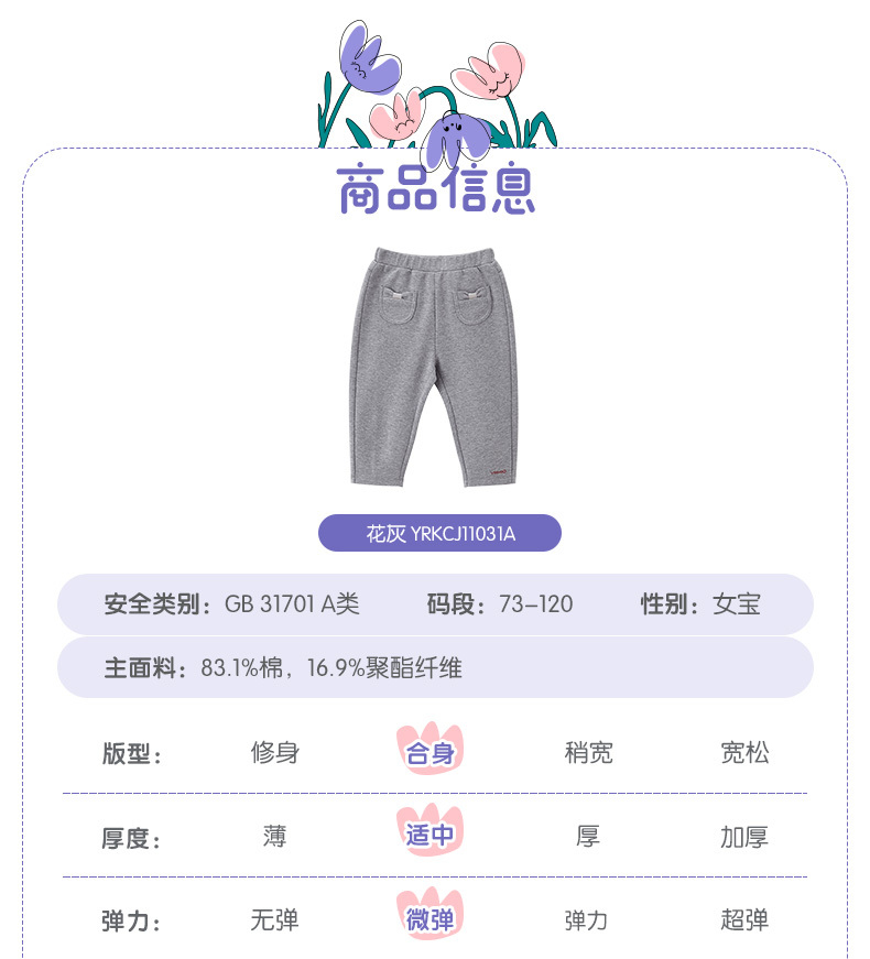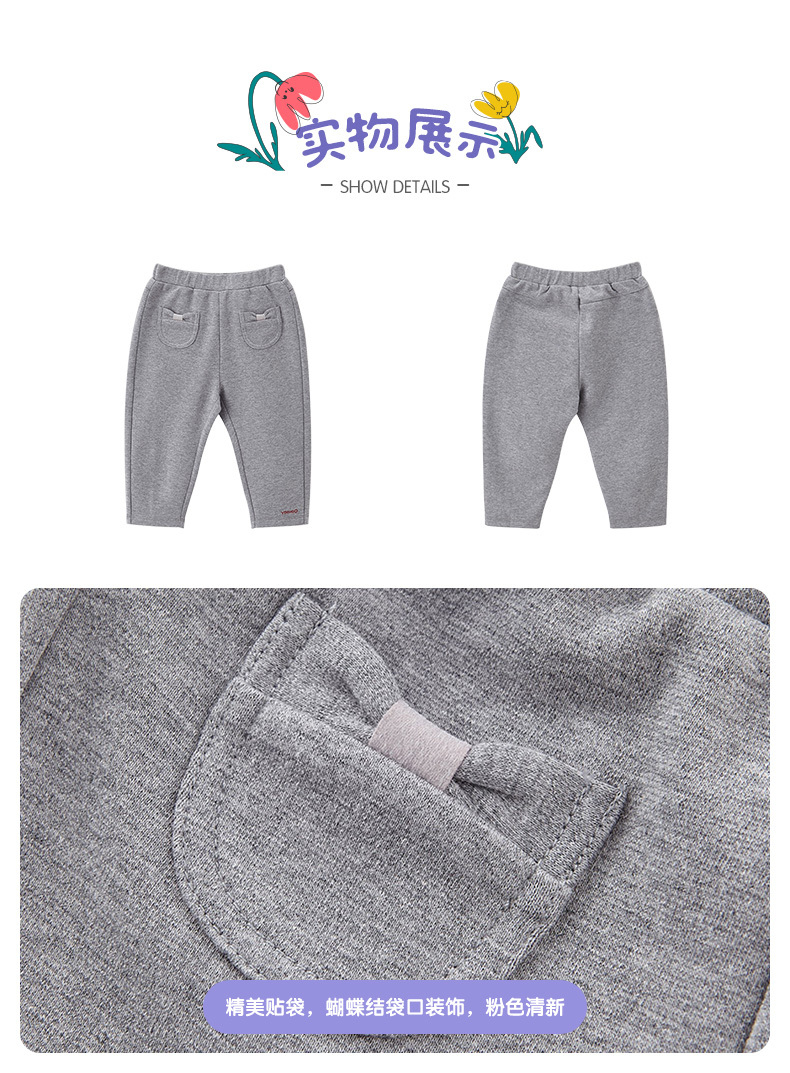 英氏-童衣类(春)E1英针长裤花灰BC07100CM