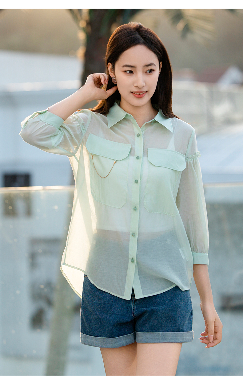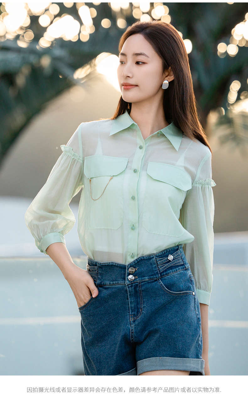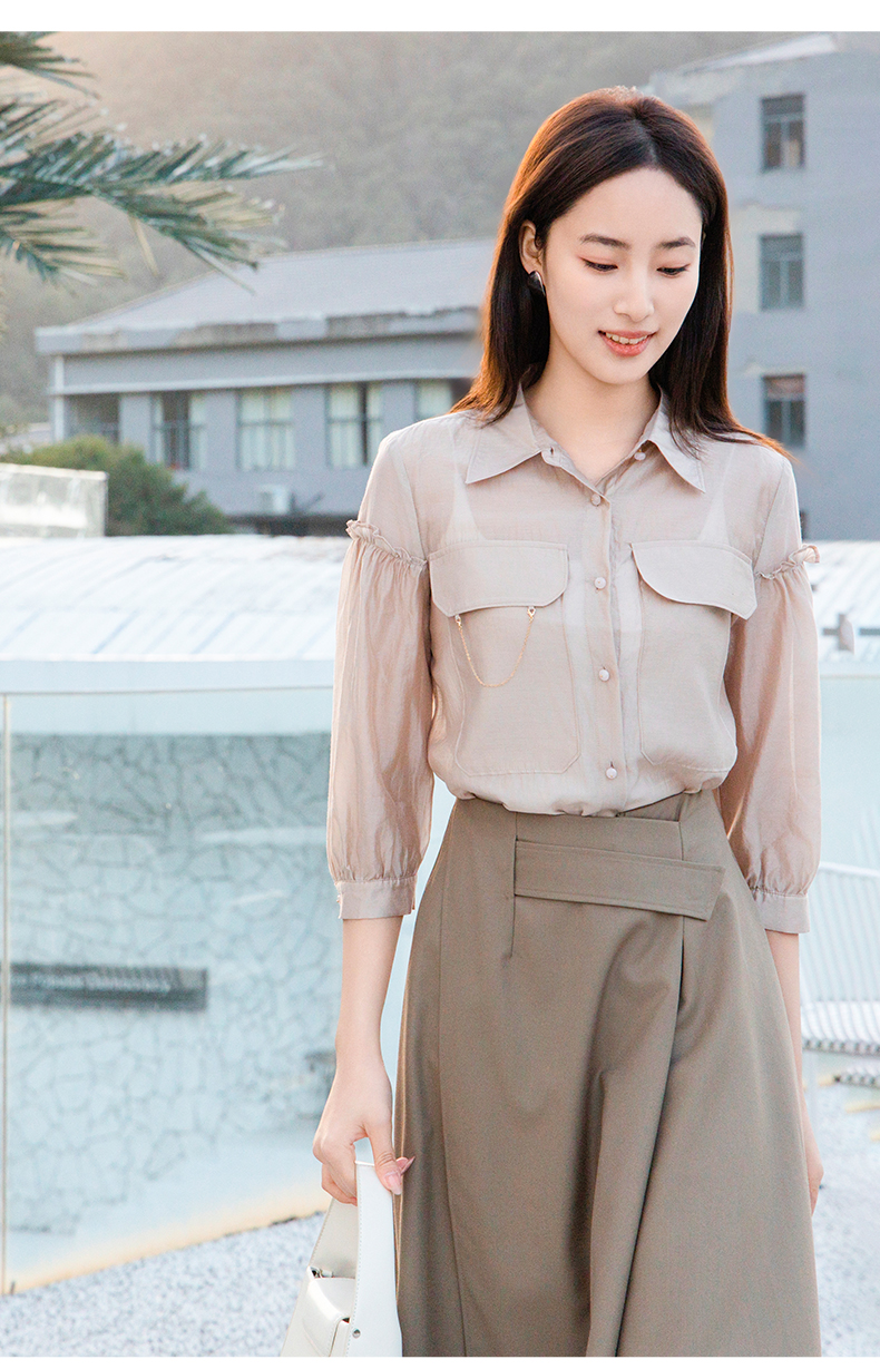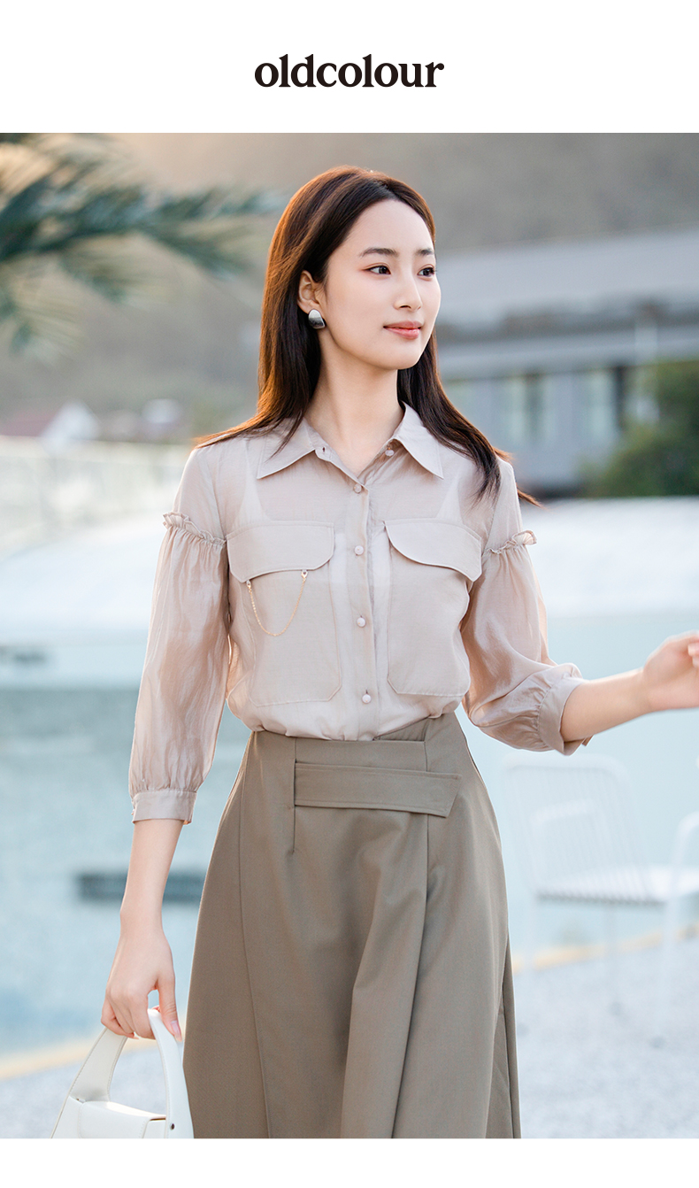 oldcolour欧珂夏季辛苦啊轻薄款莱赛尔天丝纯色衬衫女P22012315