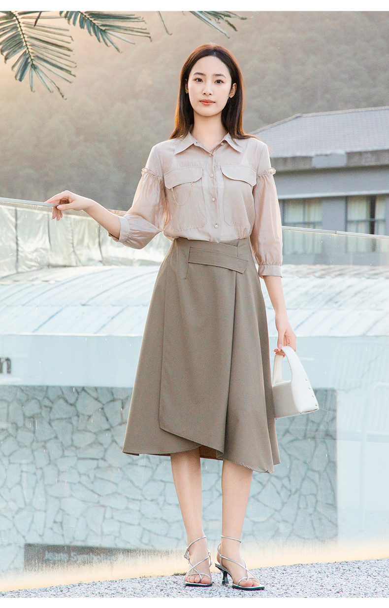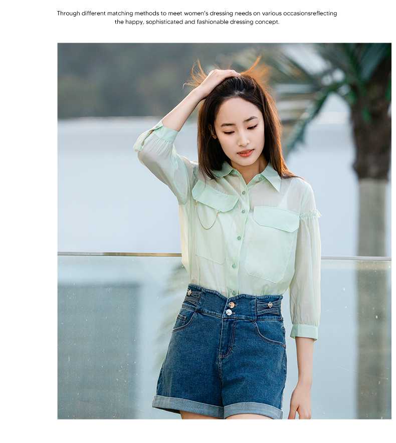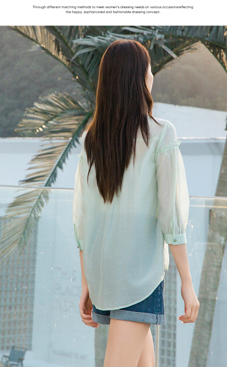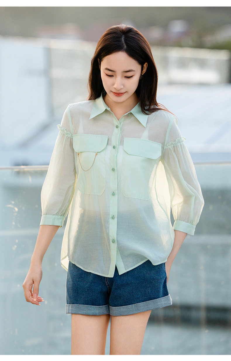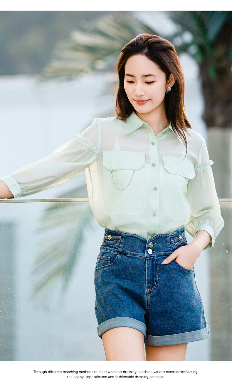 oldcolour欧珂夏季辛苦啊轻薄款莱赛尔天丝纯色衬衫女P22012315