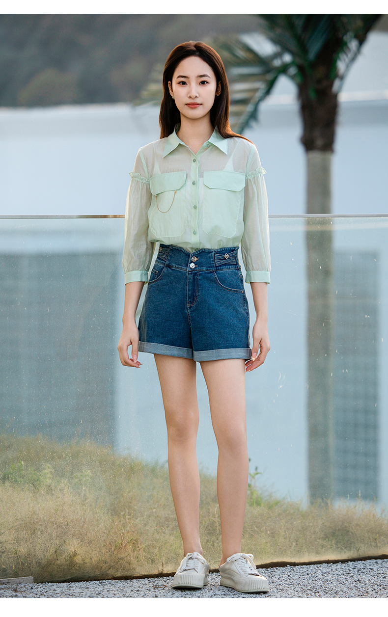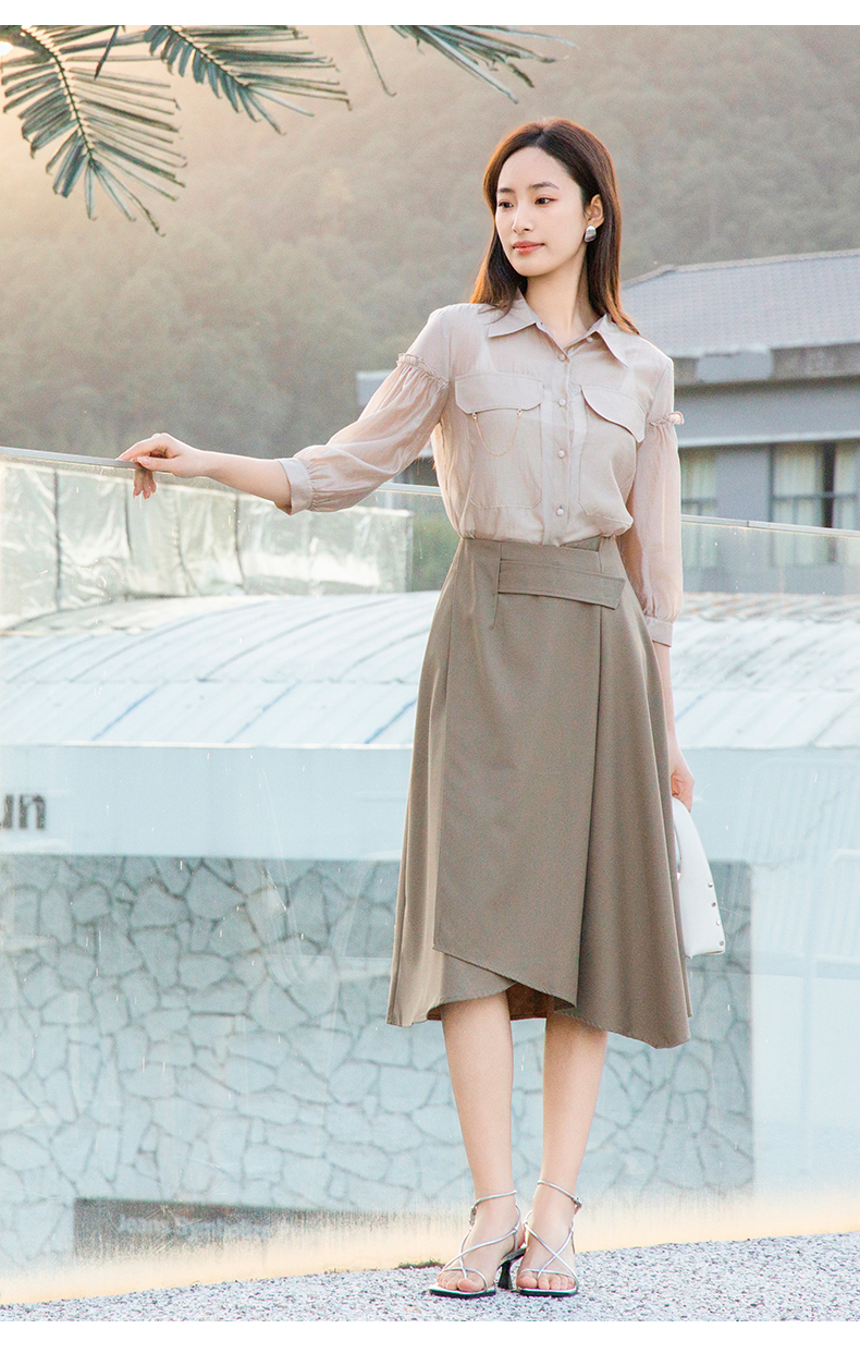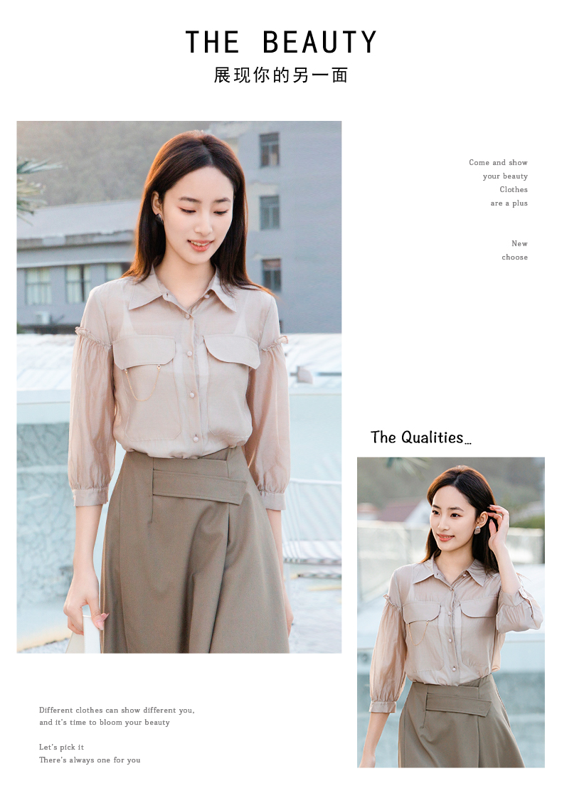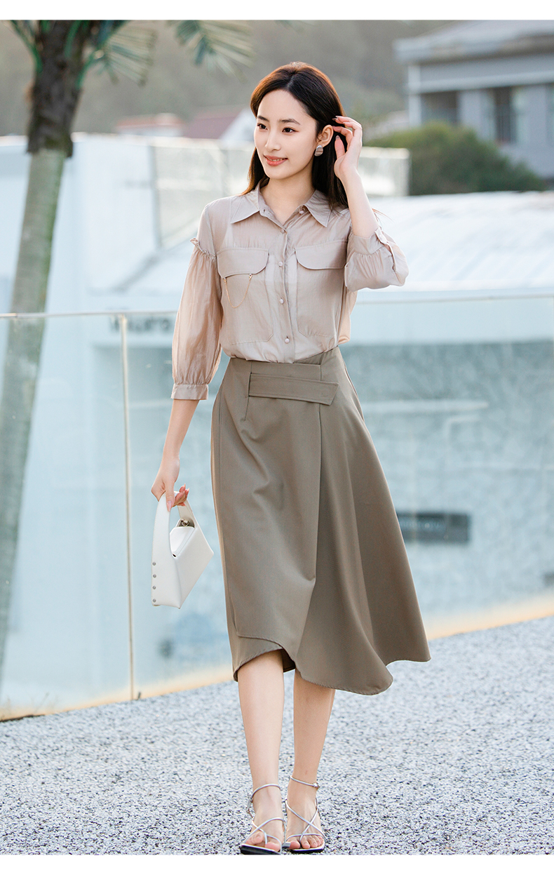 oldcolour欧珂夏季辛苦啊轻薄款莱赛尔天丝纯色衬衫女P22012315