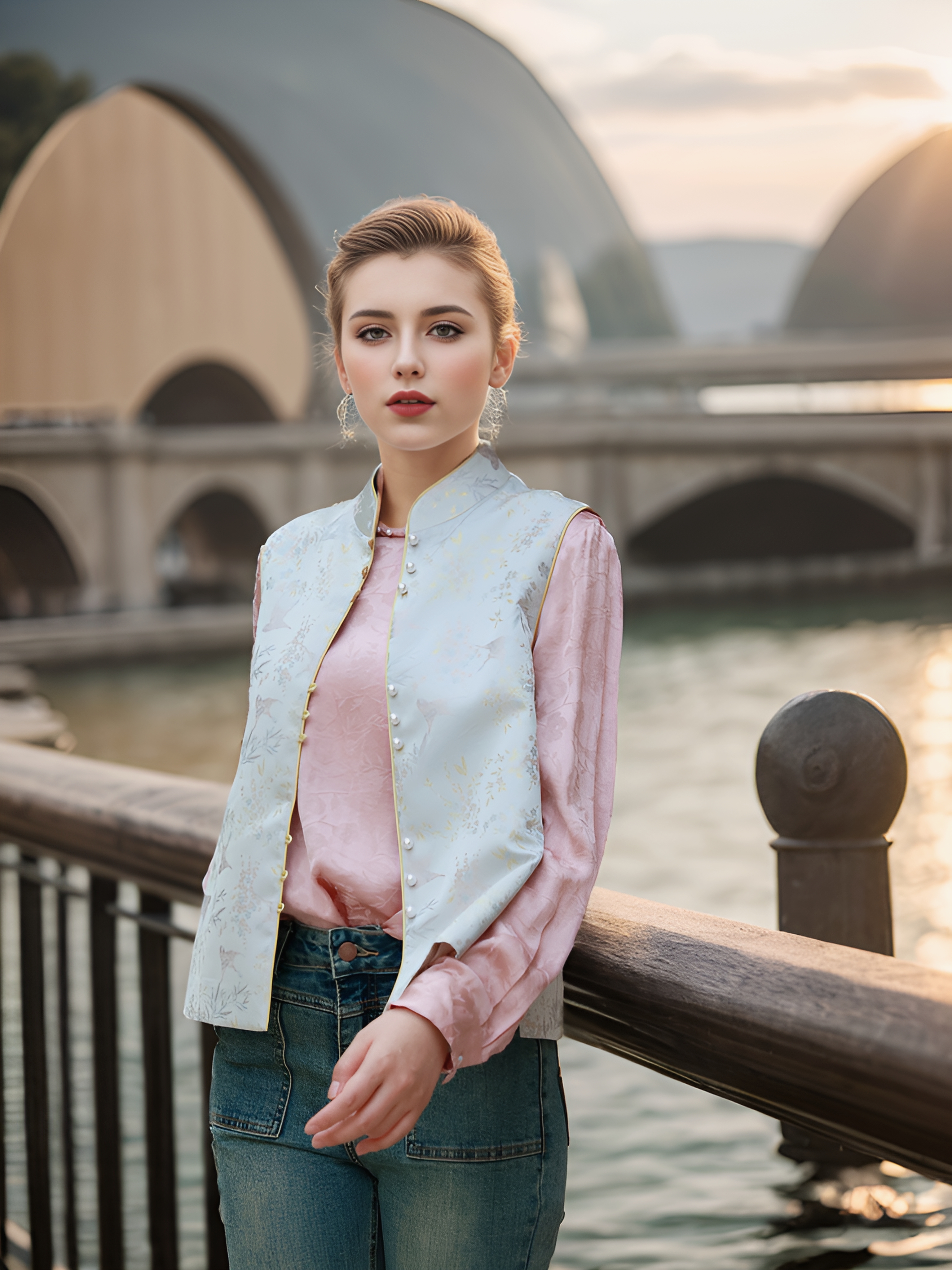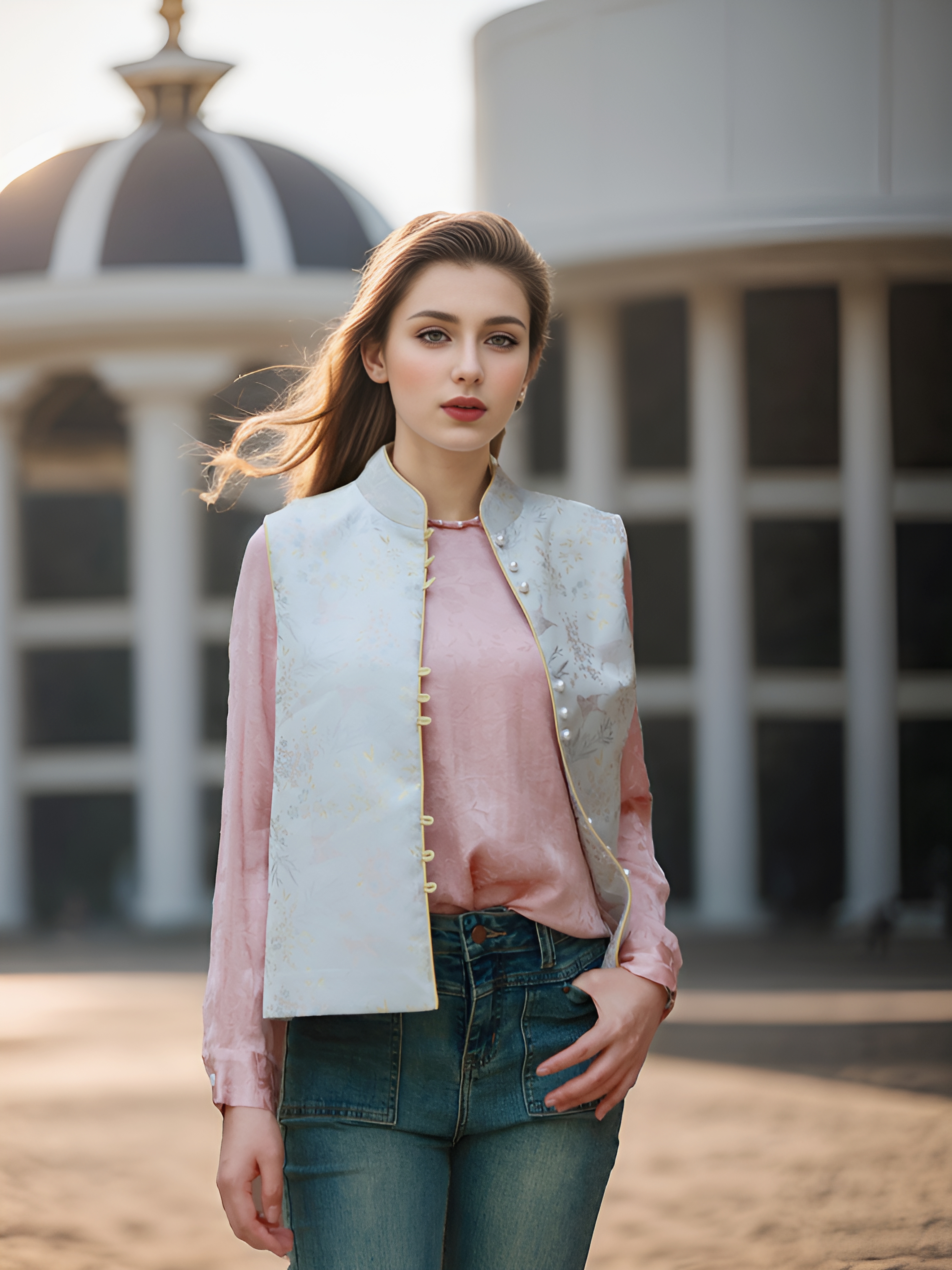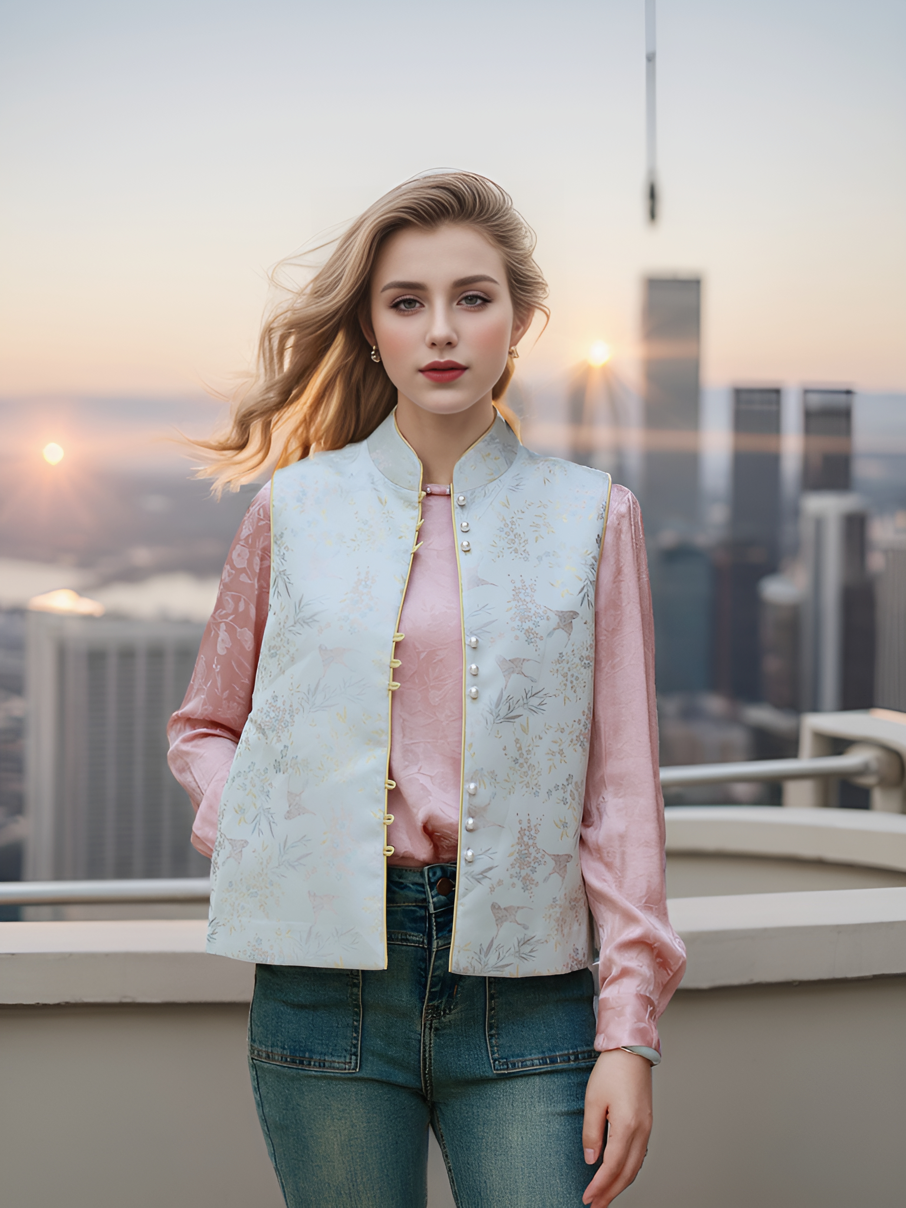 商品:Anica HN 新国风三粒扣装饰马甲