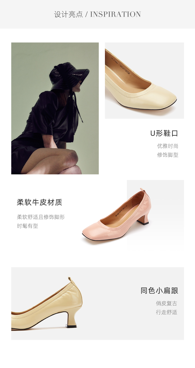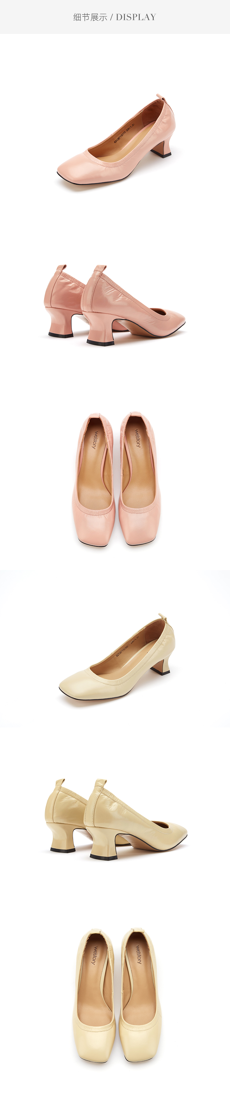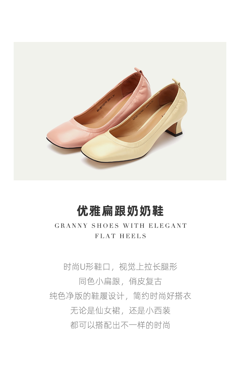westory女鞋2021秋季新款真皮圆头玛丽珍鞋浅口高跟鞋W21CE71131