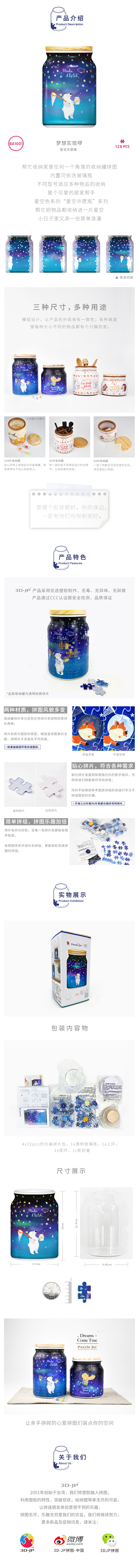 【折扣商品 不退不换】128片 收纳罐拼图 塑料拼图BA1001 星空许愿瓶-梦想实现喽