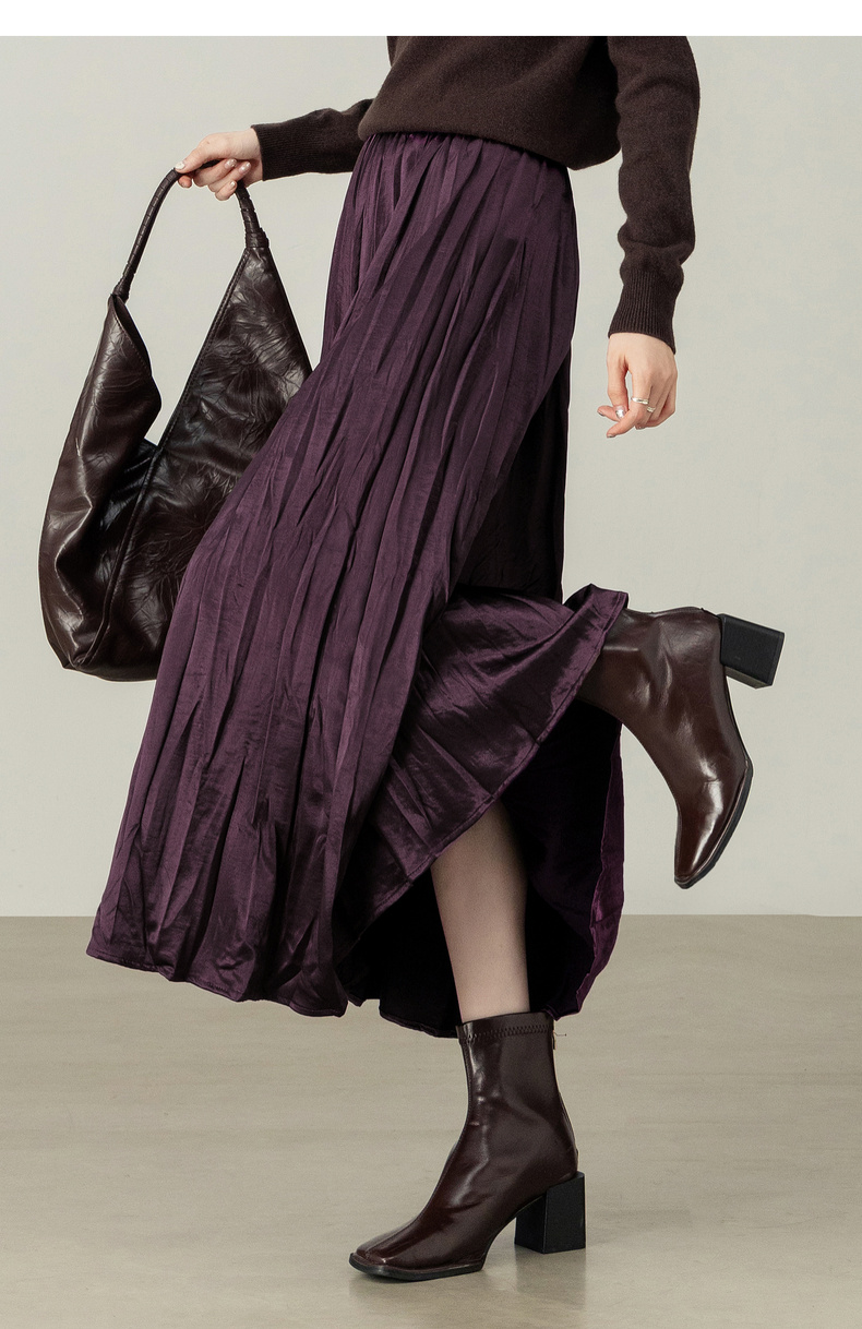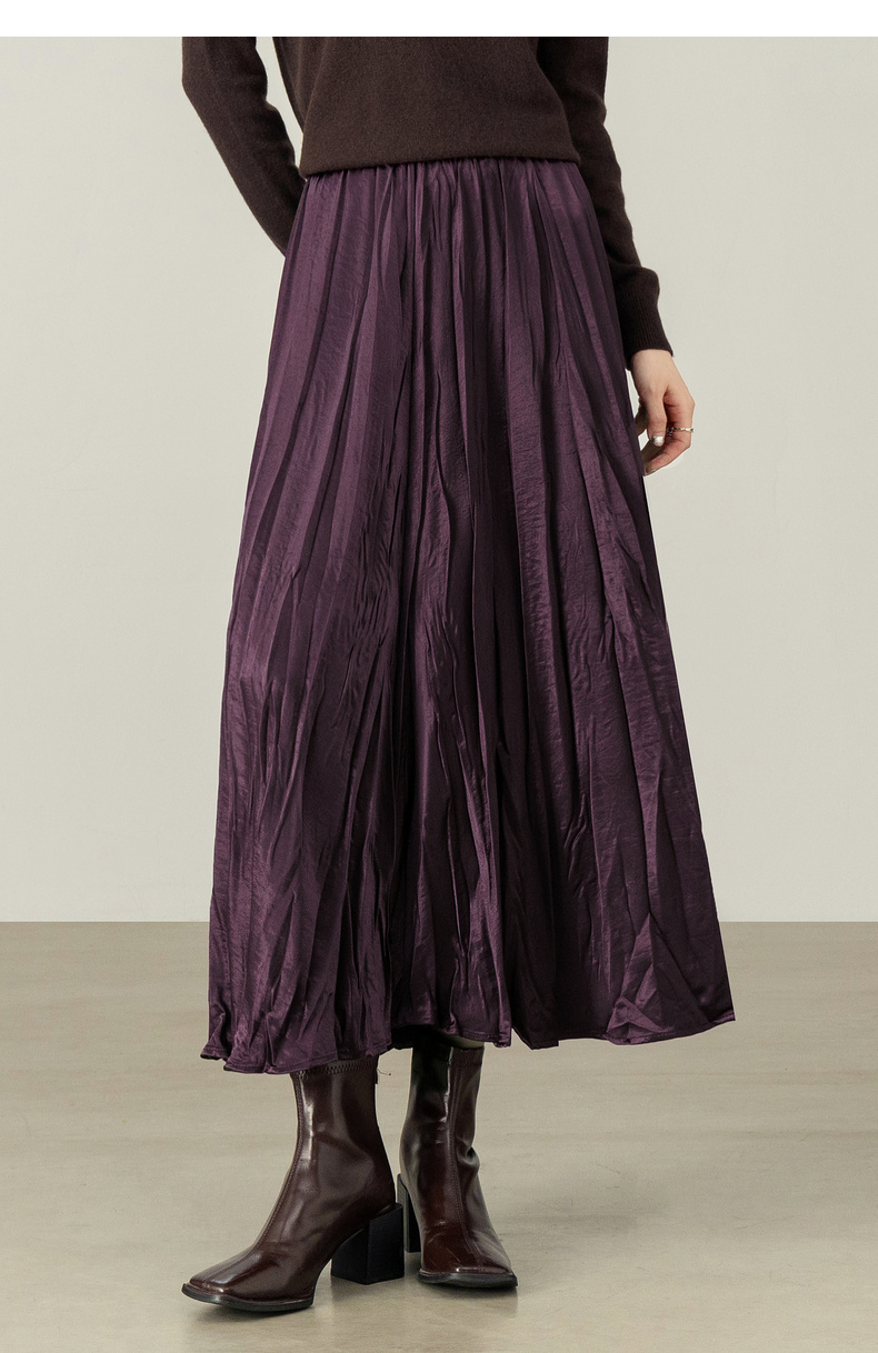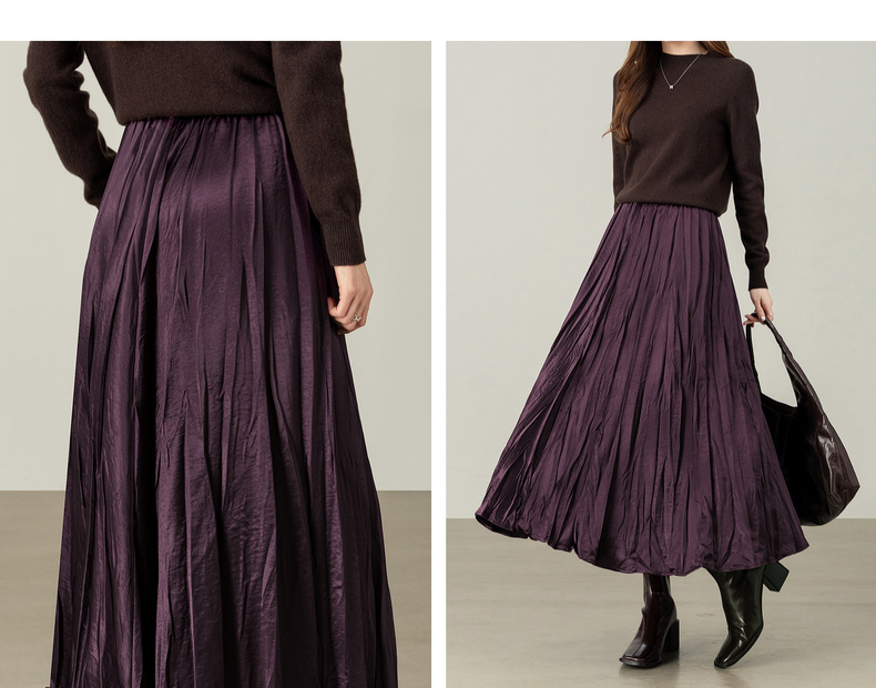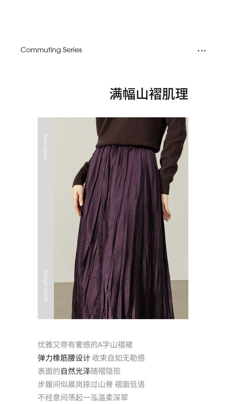 【内购】【遮肉显瘦】优雅通勤松紧高腰褶皱纸片感厚保暖宽松A字半身裙-W54QB4034