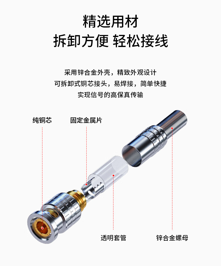 爆款★热销【BNC接头】SDI/BNC接头模拟监控摄像机50/75-3-5视频线插头bnc公头铜芯视频尾线Q9头