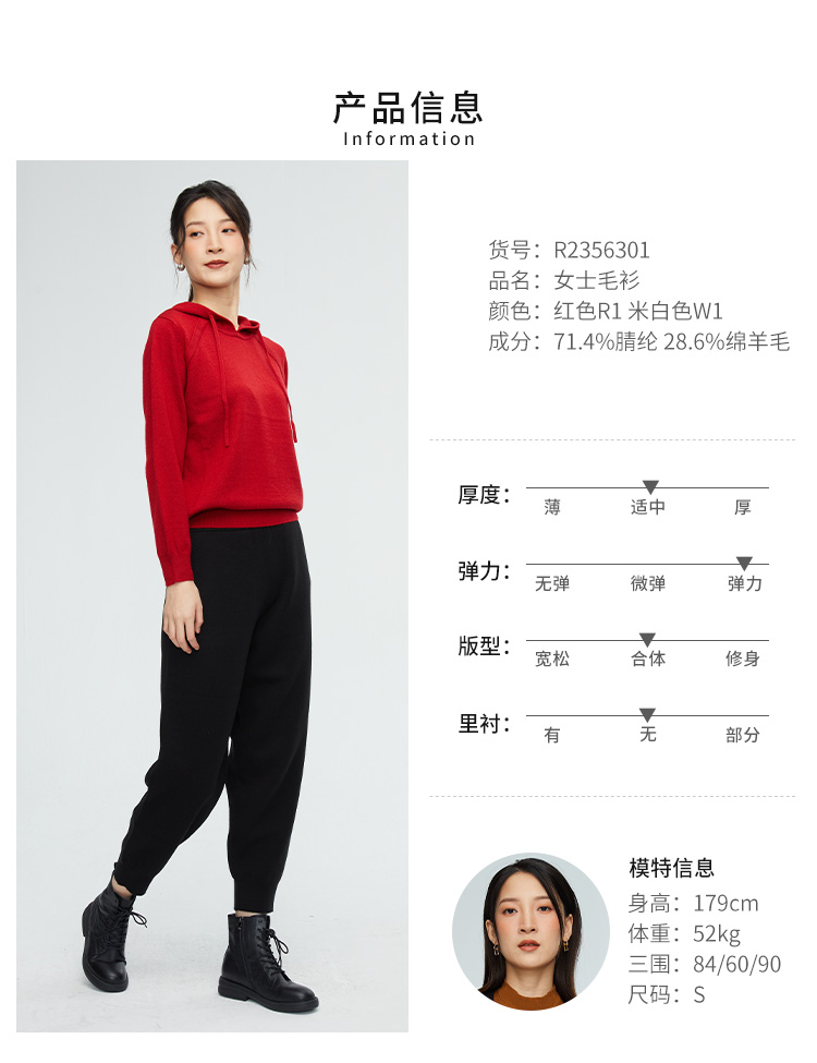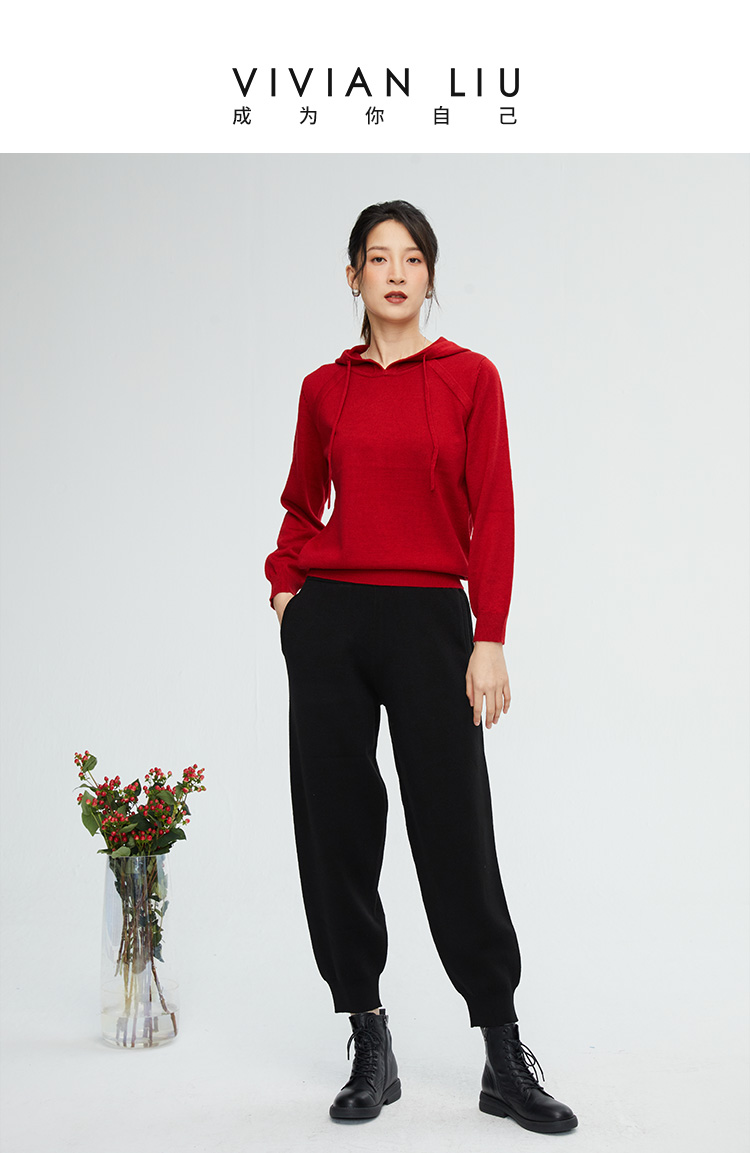VIVIAN LIU薇薇安刘 R2356301 秋女装连帽插肩直筒长袖毛衫卫衣