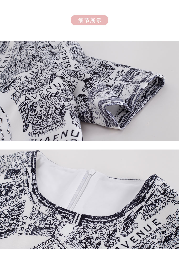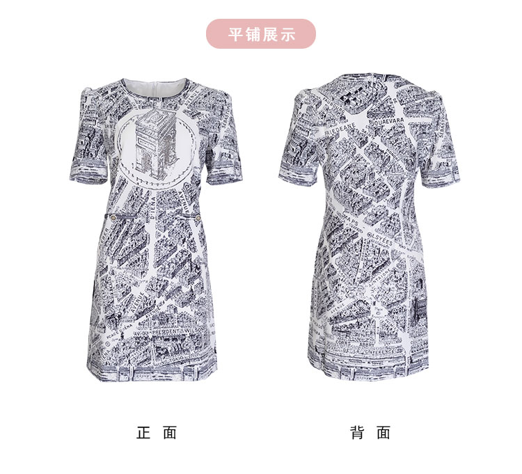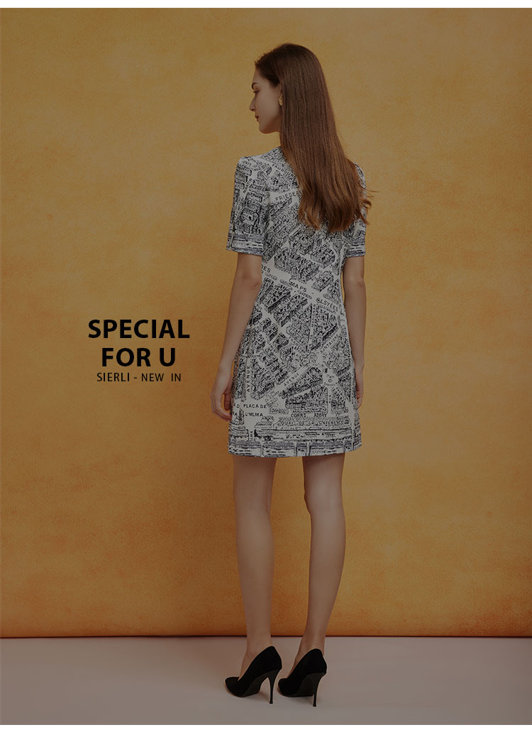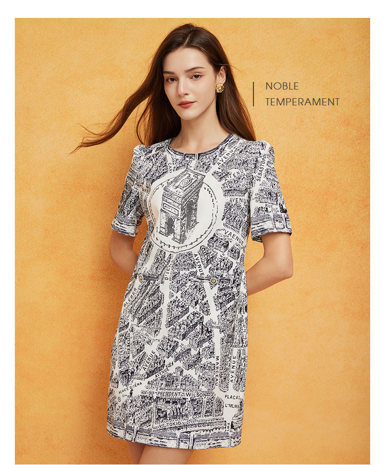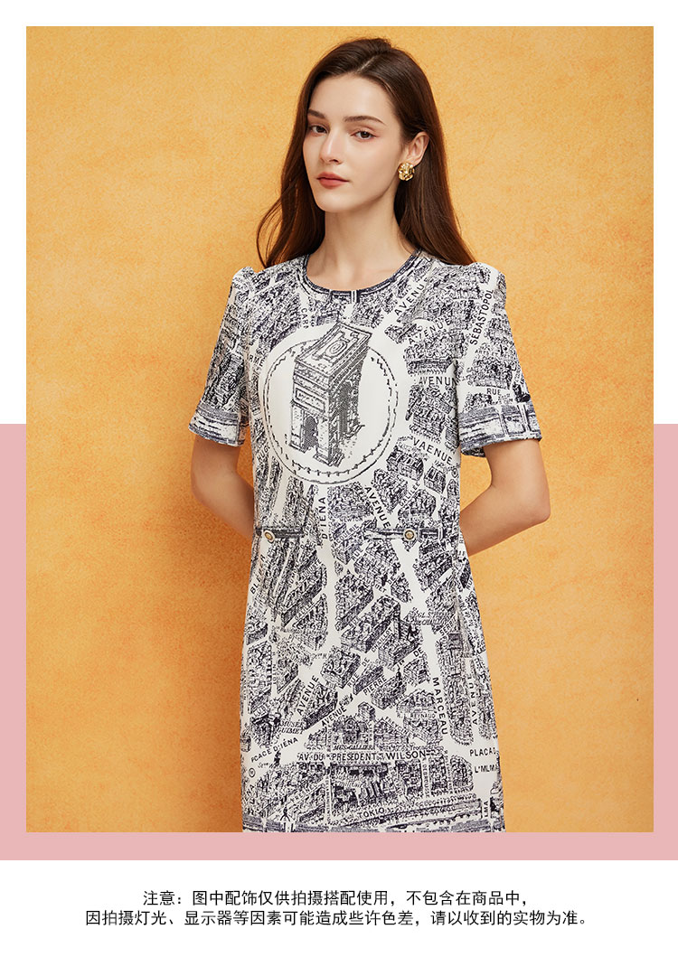 PF8H5斯尔丽2024新款韩版圆领H型显瘦高腰减龄时尚印花连衣裙