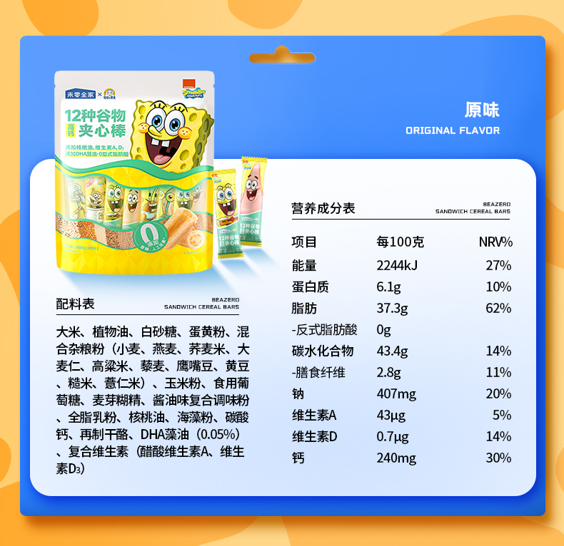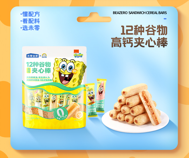 【新品】海绵宝宝满满谷物浓香不油腻甄选12种谷物的高钙夹心棒【戴可思专属】