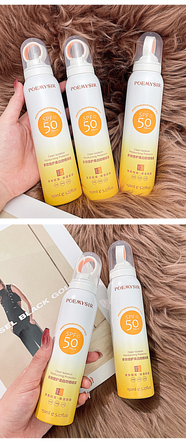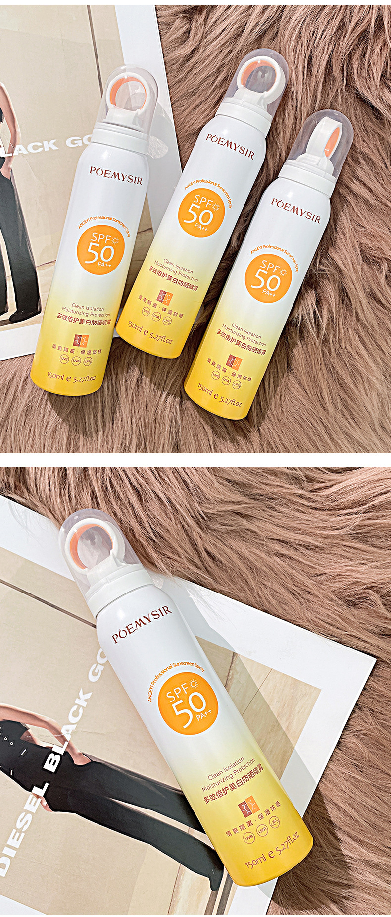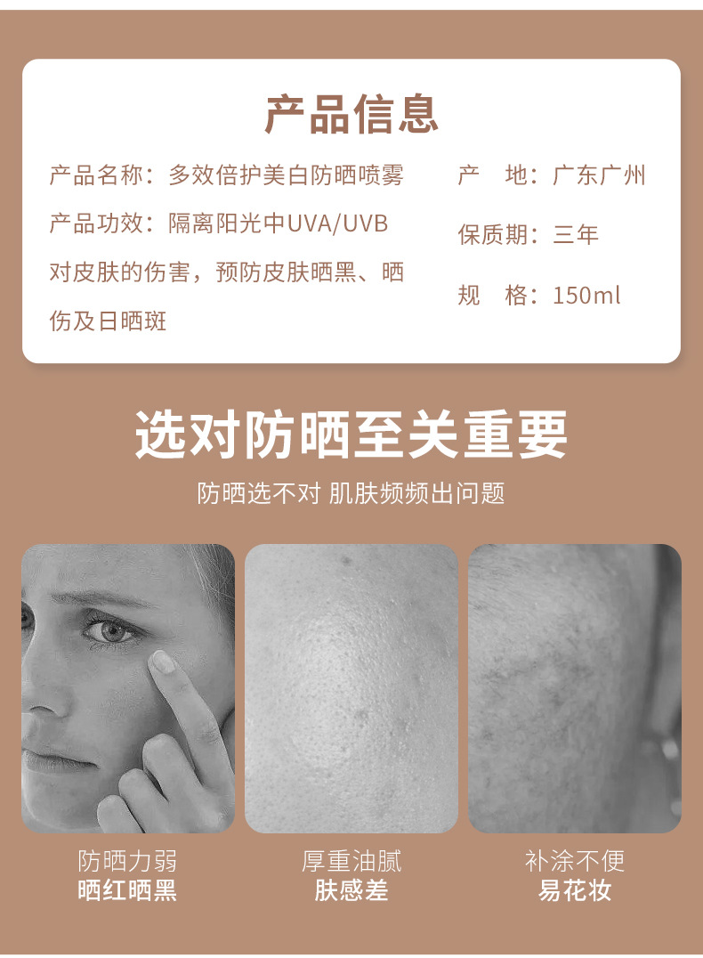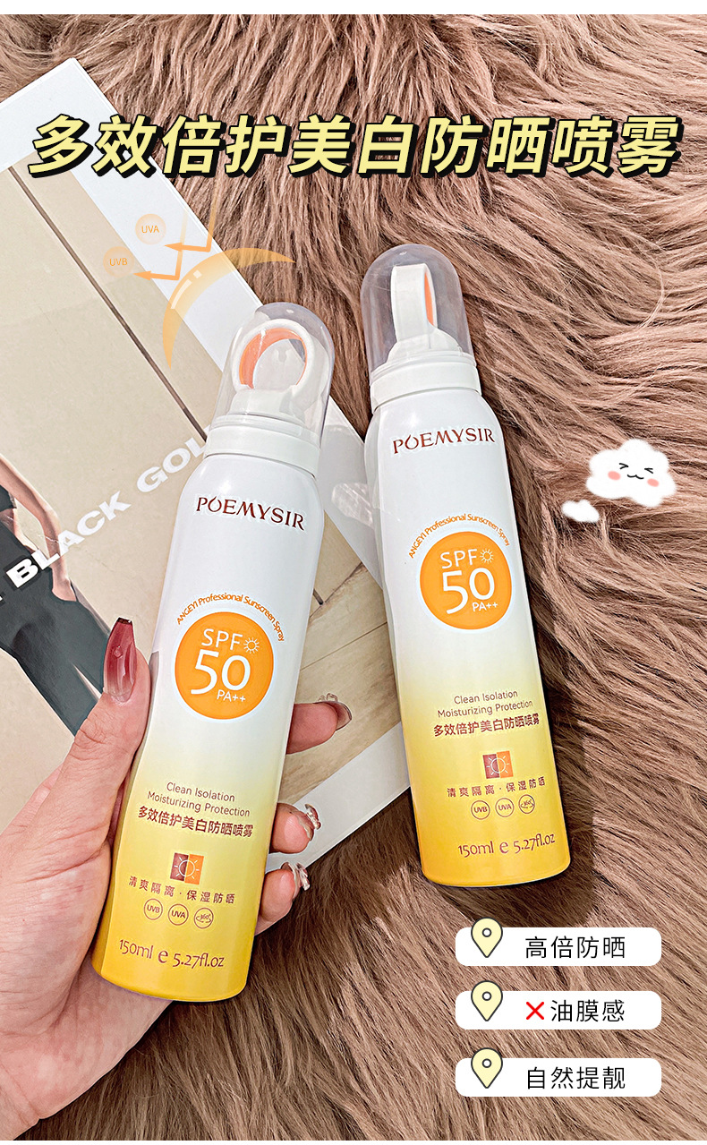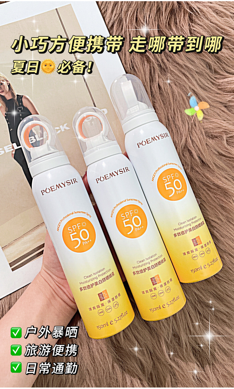 【拍1发2!买2送2】小光圈防晒喷雾长效抗晒防紫外线不假白高倍隔离防晒喷雾(150ml/瓶)