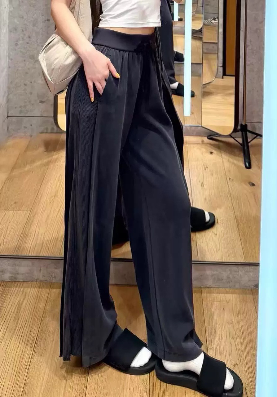 侧螺边纹拼接显,瘦且显腿,直经典的阔腿,裤高腰抽绳,方 便调节松度紧。Softstreme面料,软柔细腻,内里亲肤柔滑,完全感觉不到拼接缝[爱心]