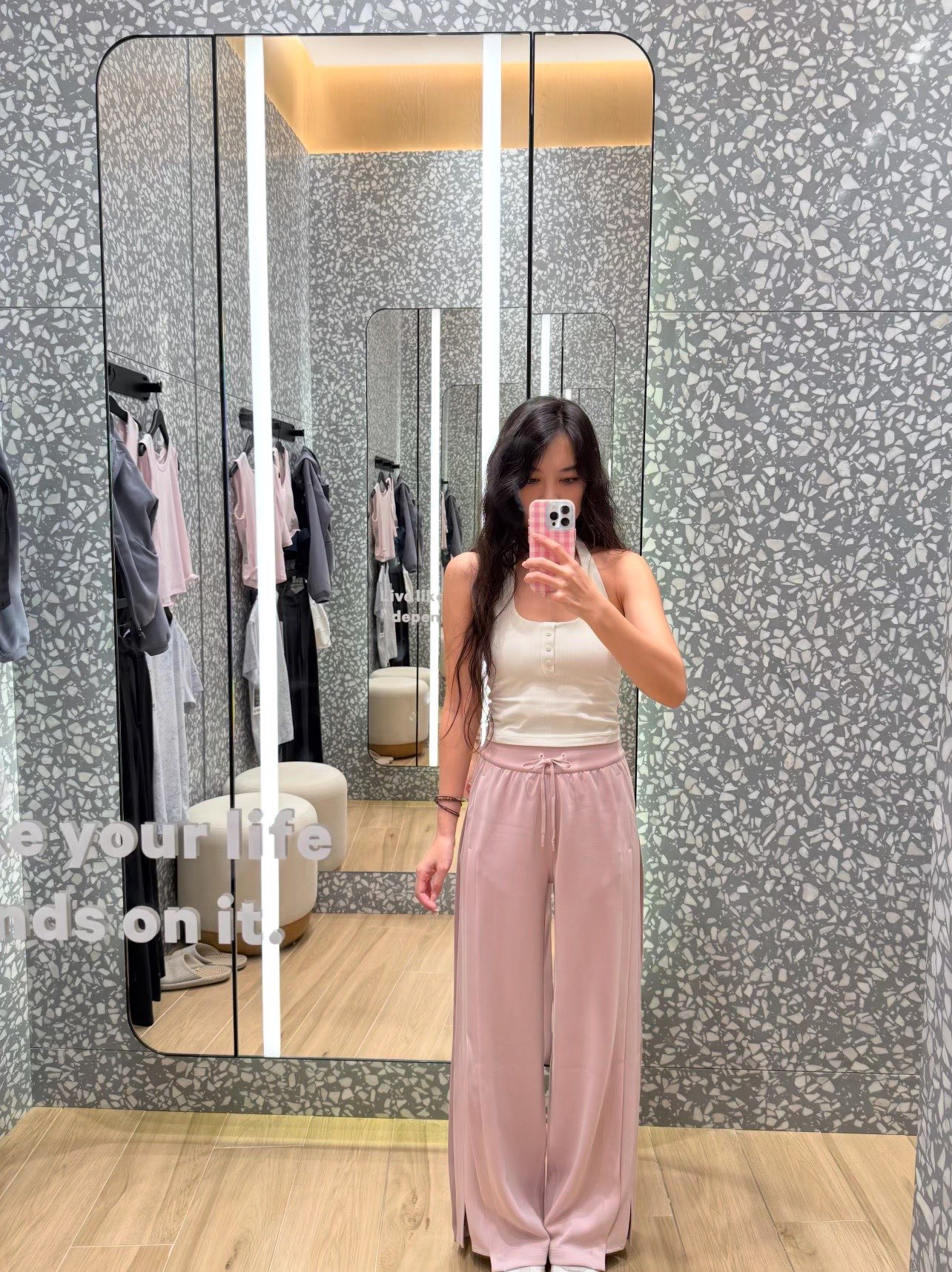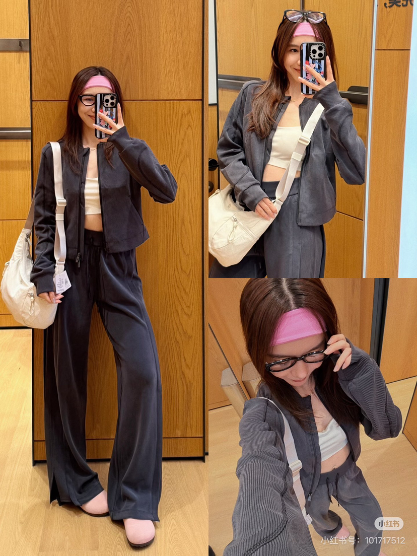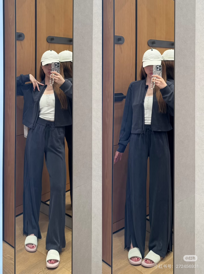 lulu王牌长裤,softstreme新款系列,垂感特别好的面膜面料,侧面有螺纹拼接,显瘦、显腿长,胖瓜主推款。人手两条,必须的,面料好到感动😹