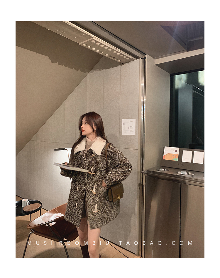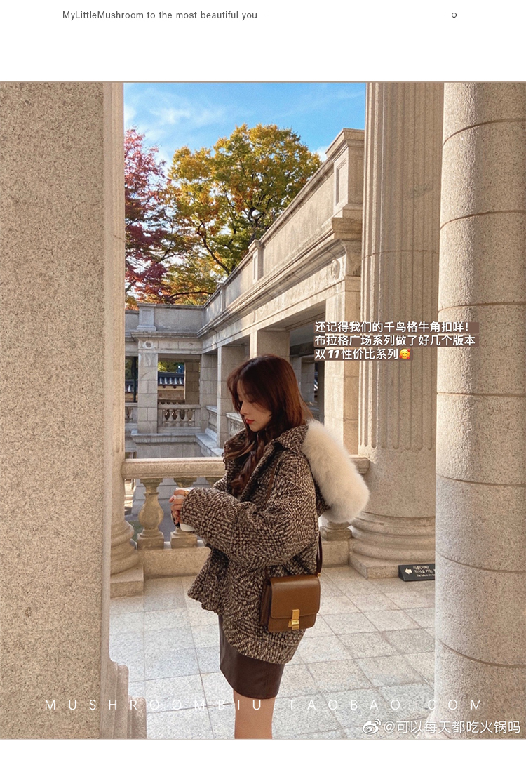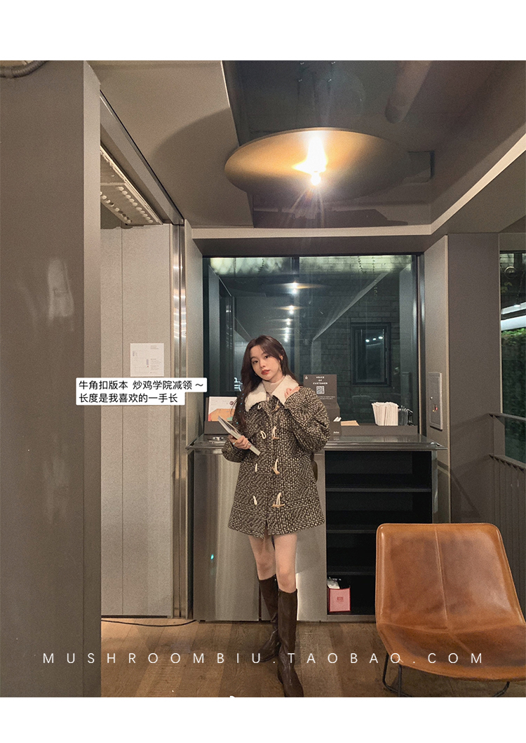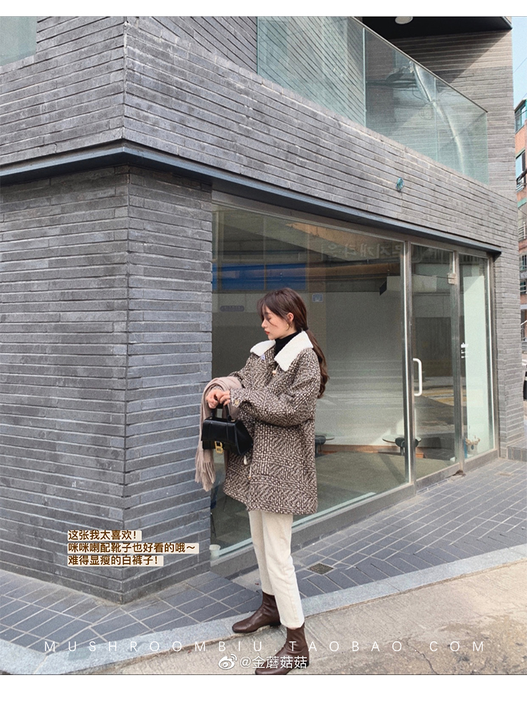 【金蘑菇菇 布拉格广场系列】小个子天选!可爱耐看千鸟格大衣外套