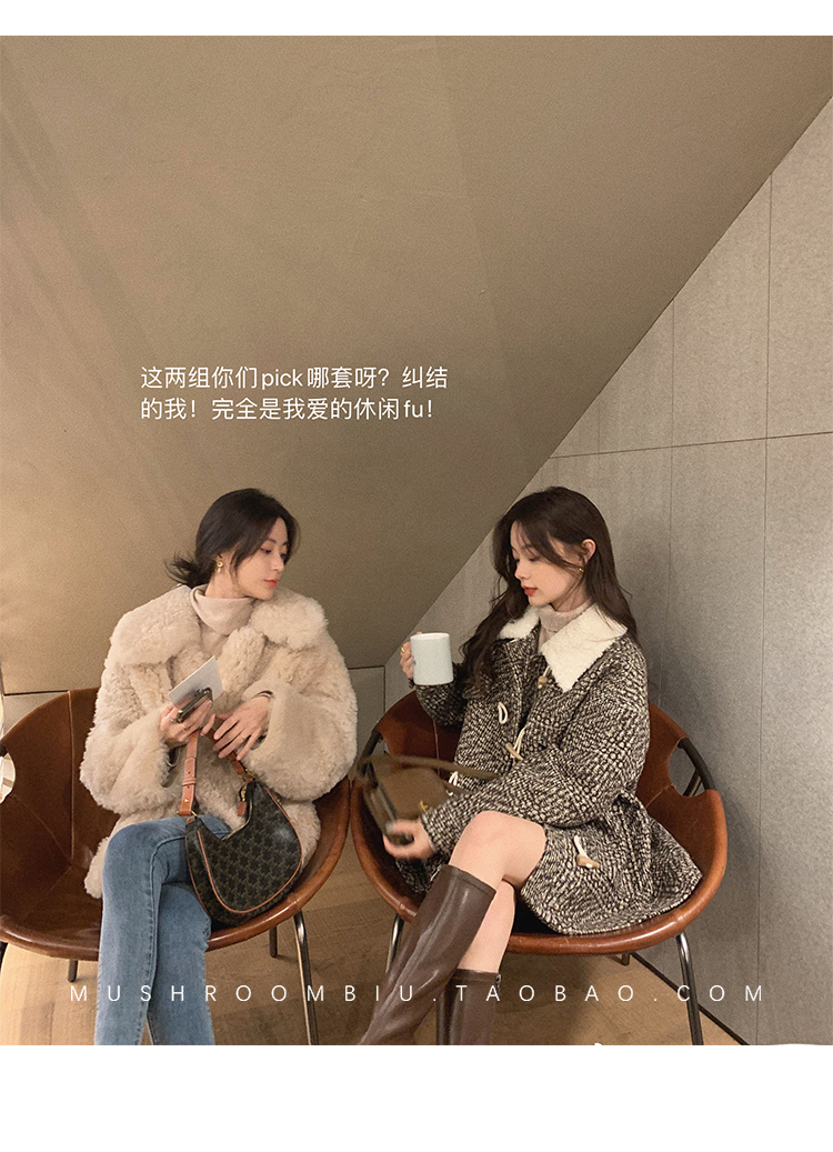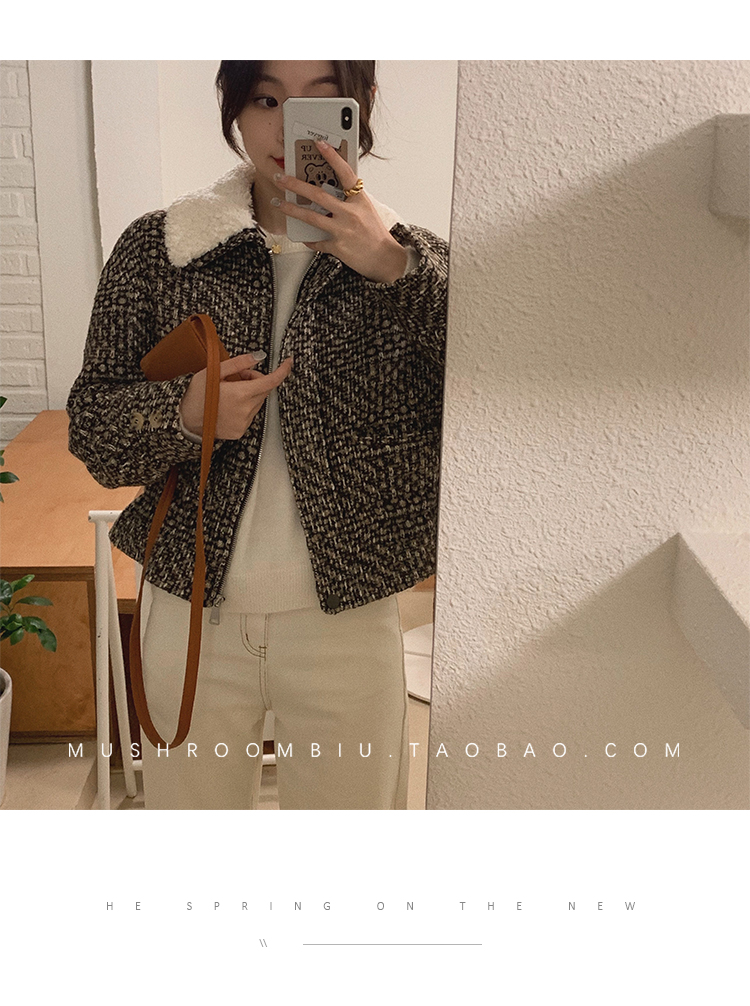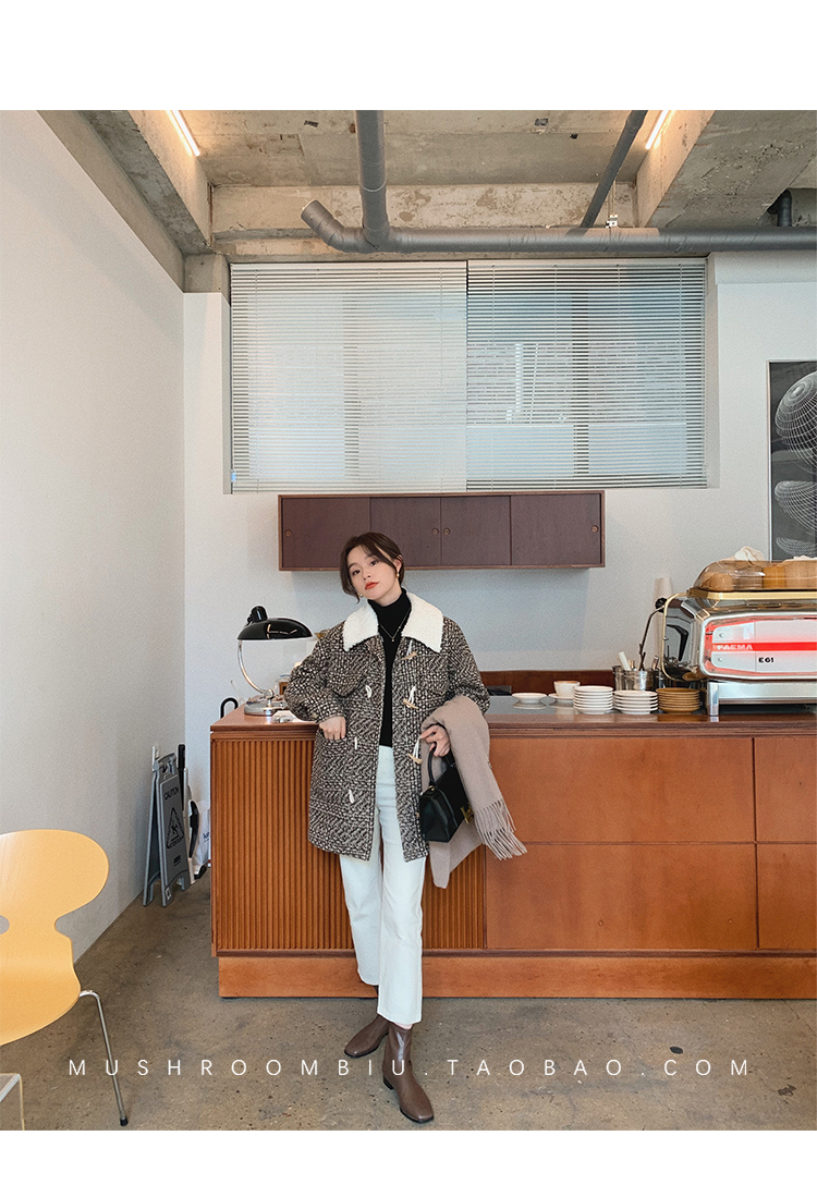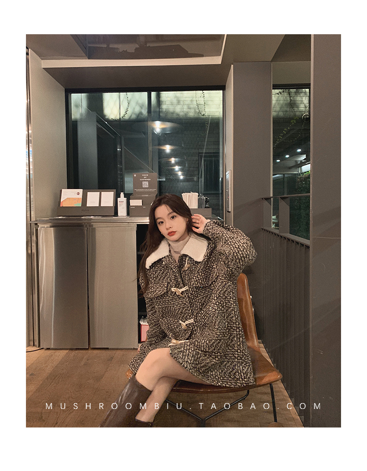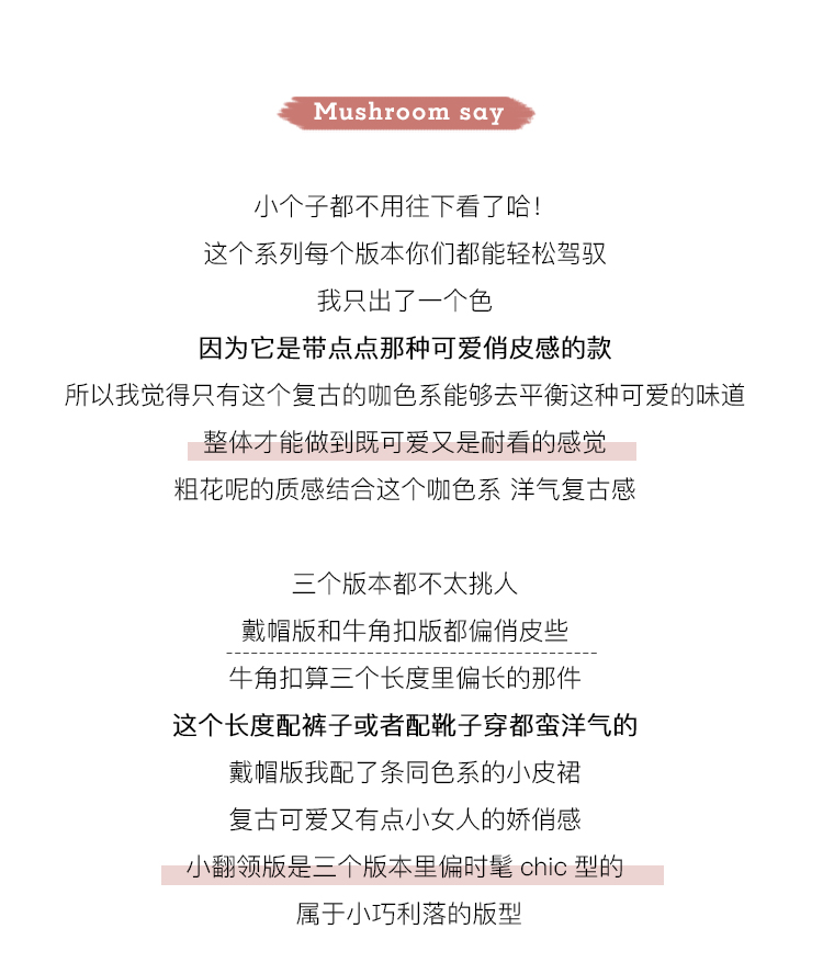 【金蘑菇菇 布拉格广场系列】小个子天选!可爱耐看千鸟格大衣外套