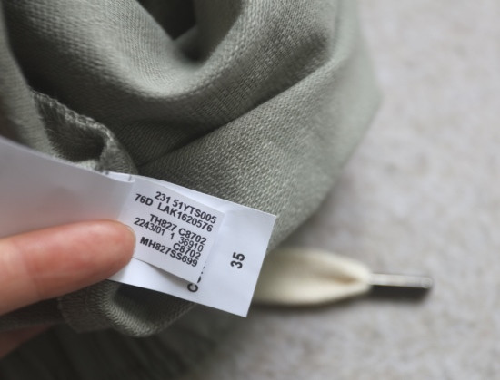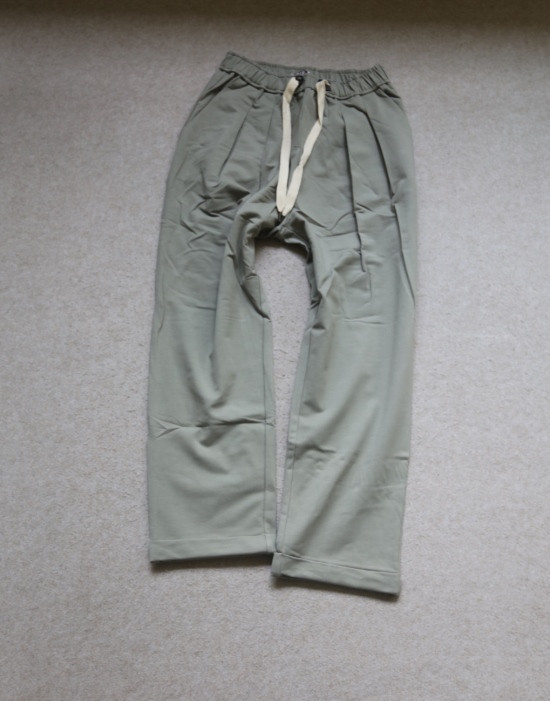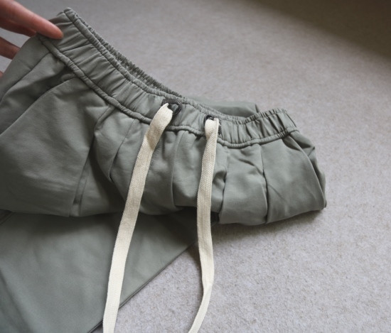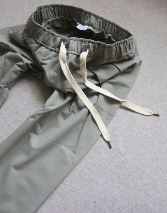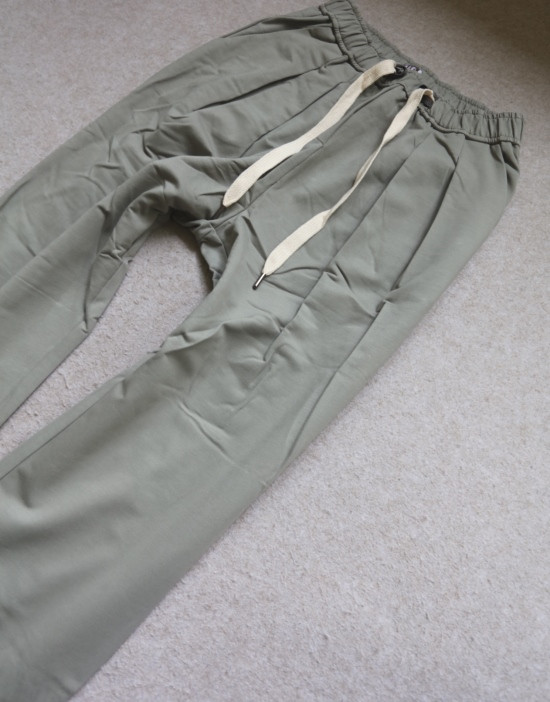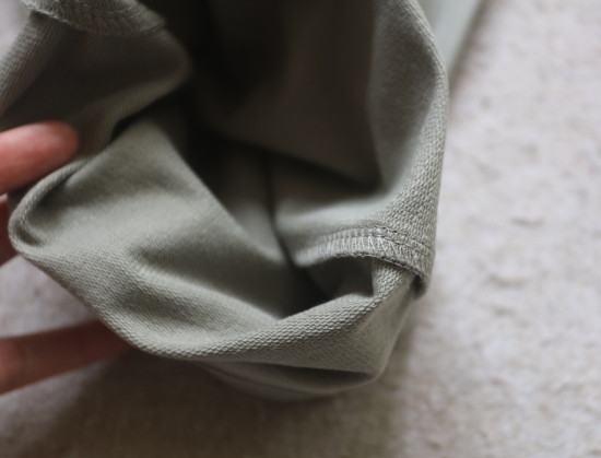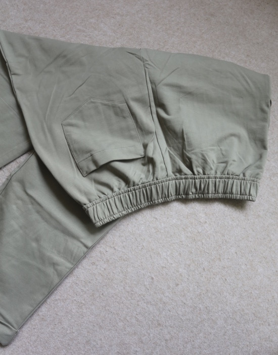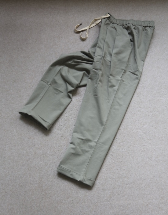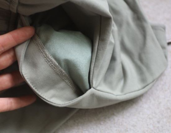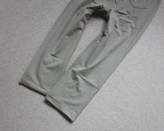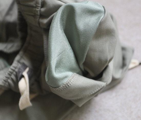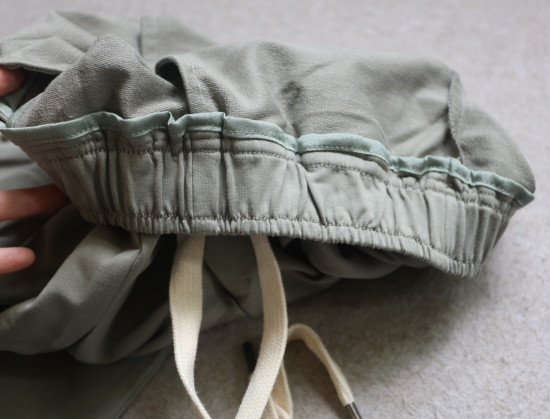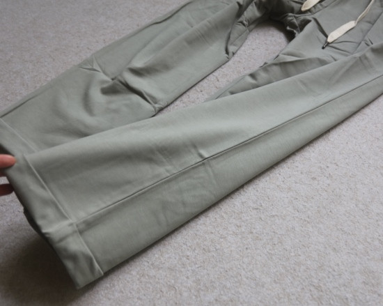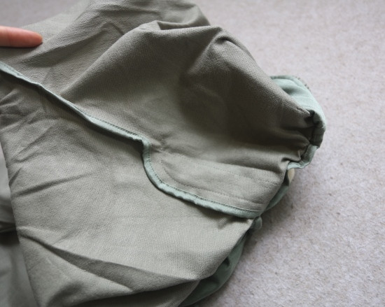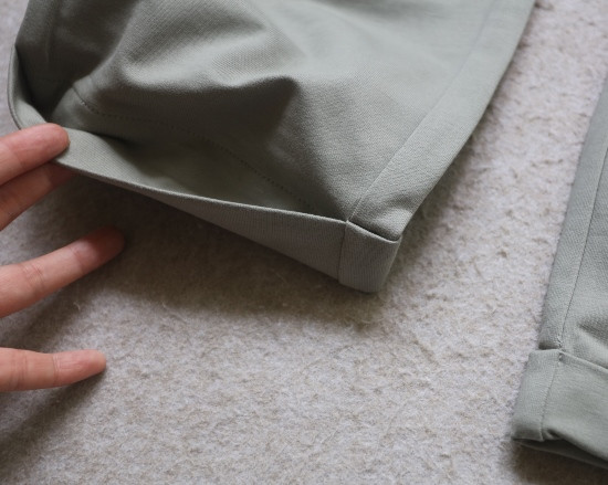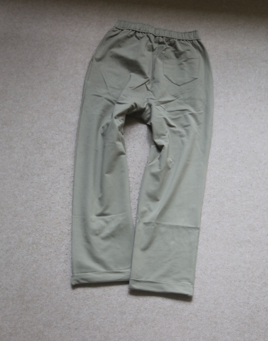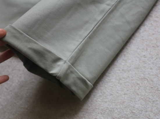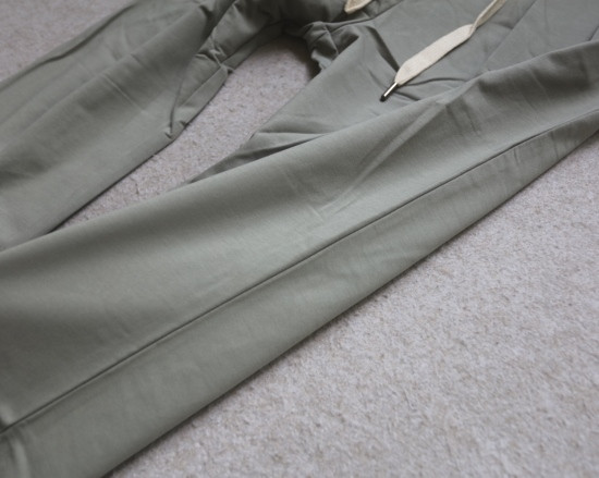 经成衣二次酵素水洗 很洋气的豆沙绿色 裤筒的内里接缝处 是三针六线的