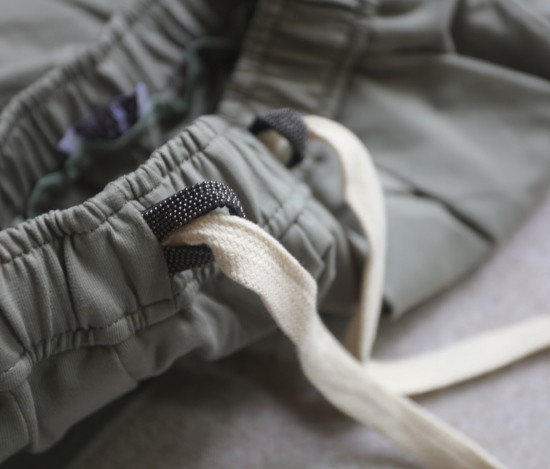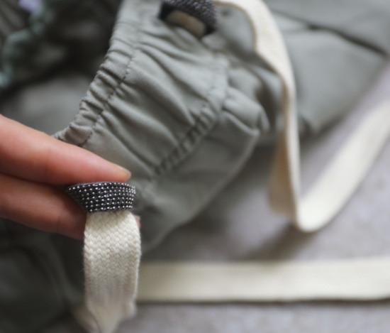 腰间有弹力 外有抽绳 抽绳口是BC的经典元素 小串珠的