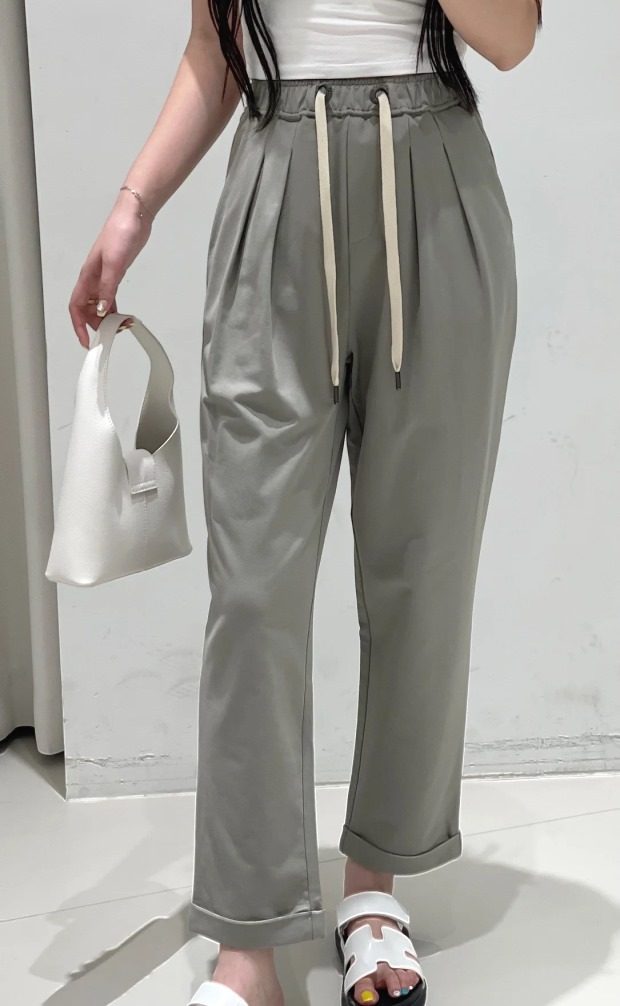 小宽边的 不勒肉肉 腰头内里 丝缎包边 前裤襟有伞褶 两侧斜插式口袋