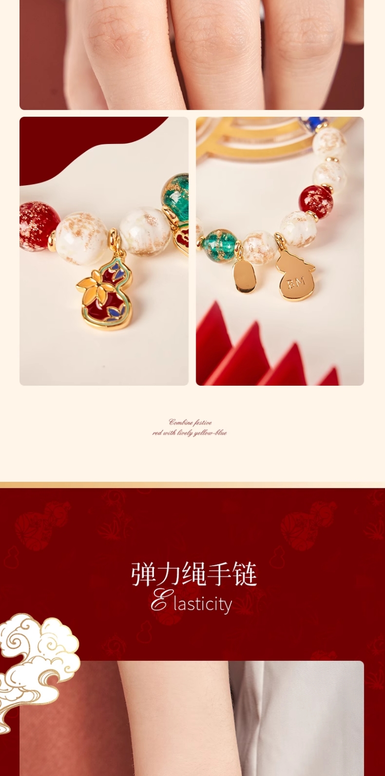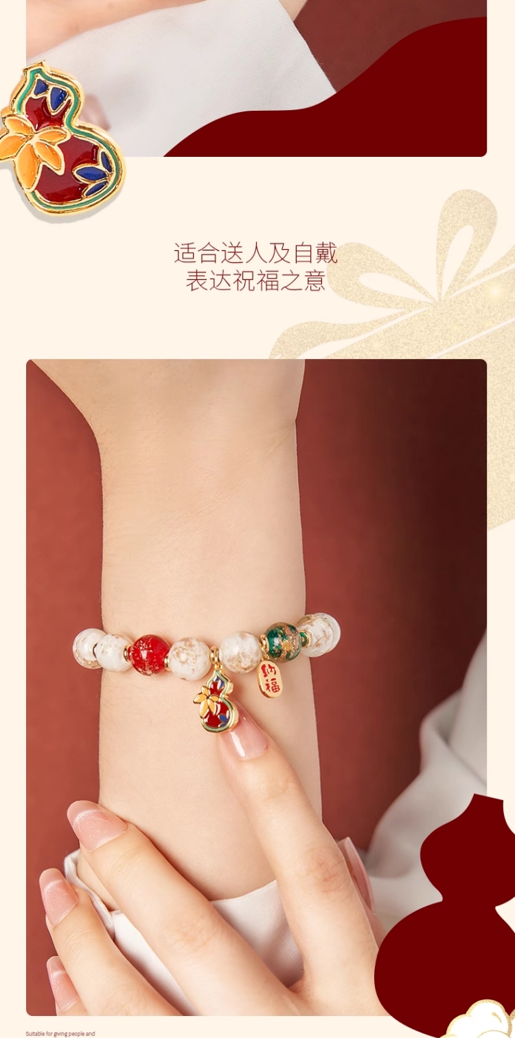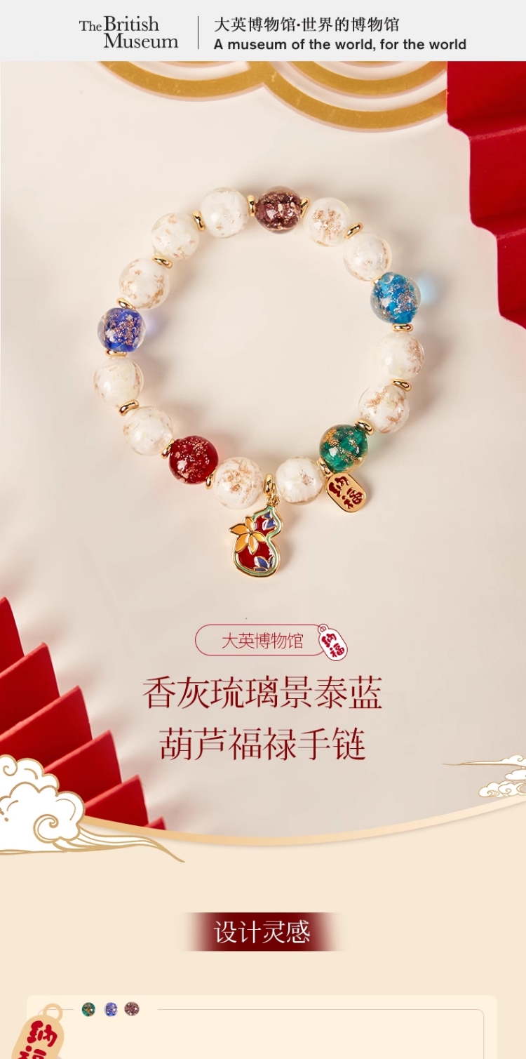 大英博物馆新年系列 香灰琉璃景泰蓝葫芦福禄手链祈福好运男女通用首饰礼盒