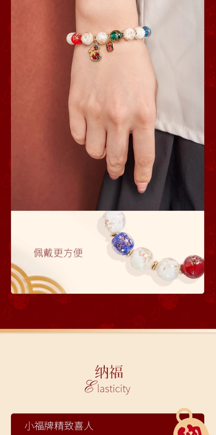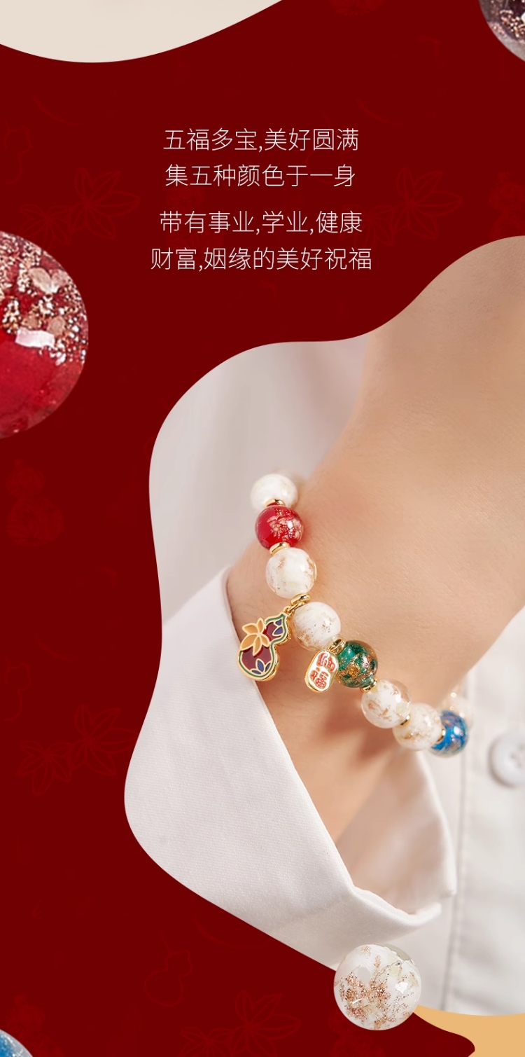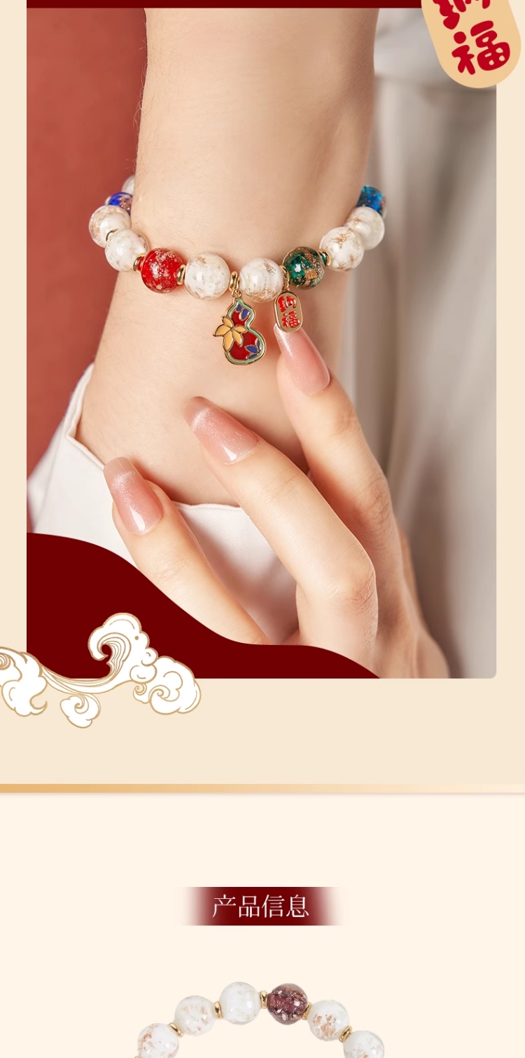 大英博物馆新年系列 香灰琉璃景泰蓝葫芦福禄手链祈福好运男女通用首饰礼盒