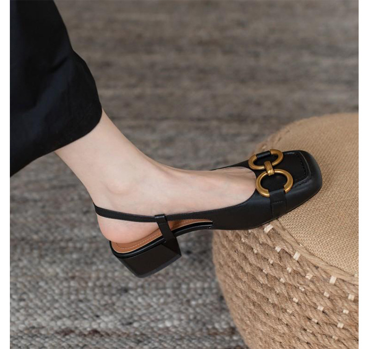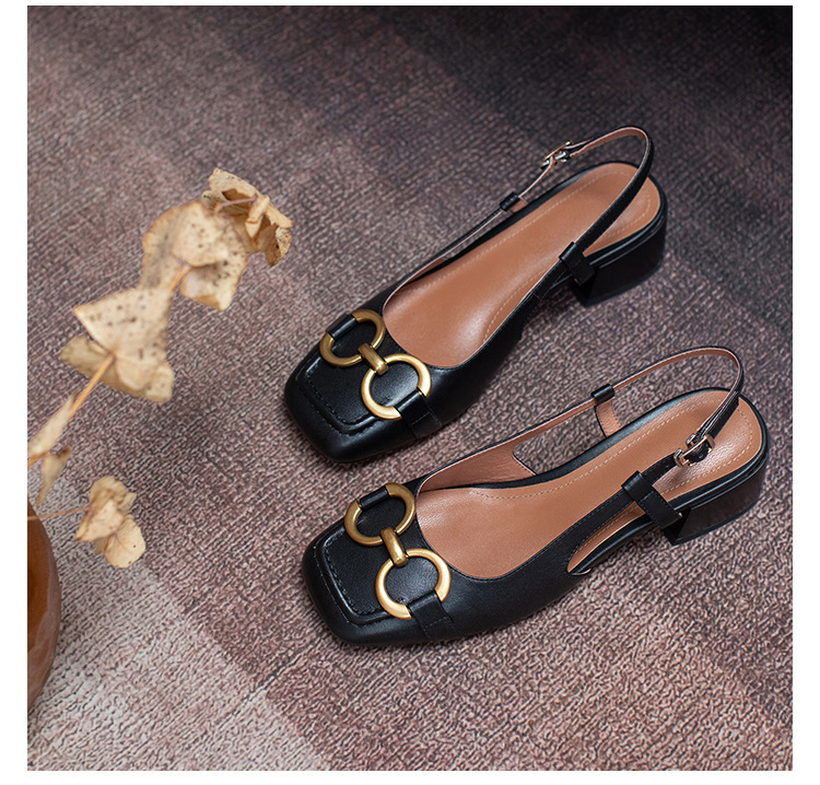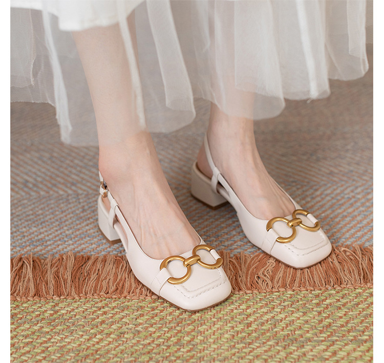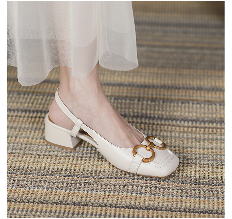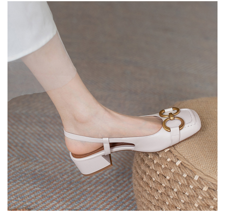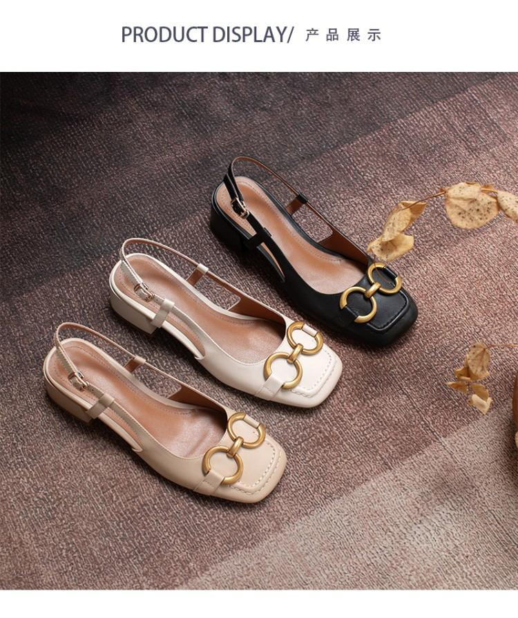 【复古法式 马衔扣软皮包头凉鞋女】夏中跟软底舒适方头 后空粗跟单鞋